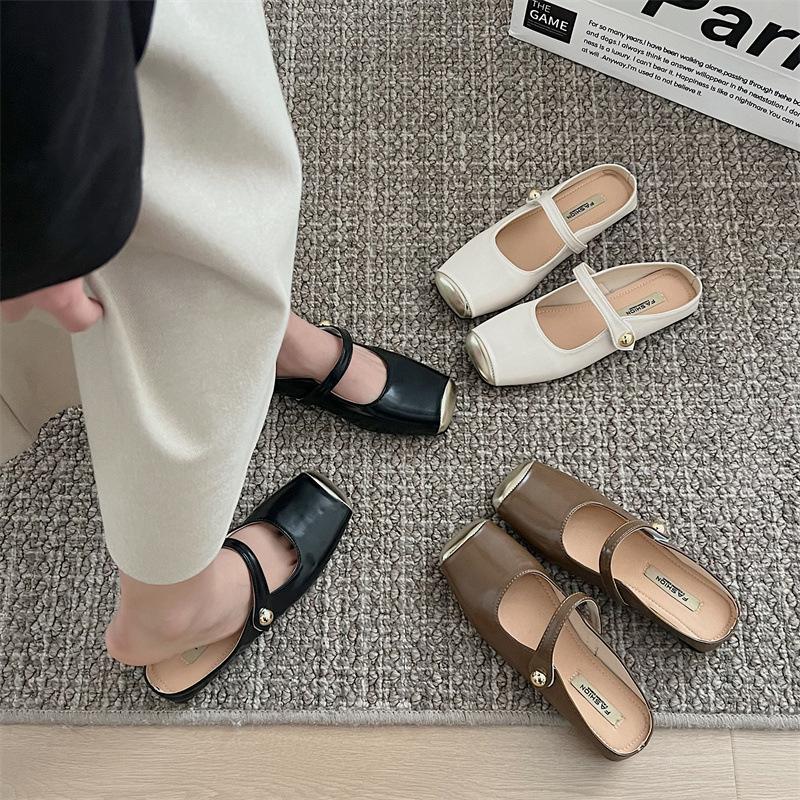 Баотоу полутапочки волшебный летний волшебный ветер вечерний бриз темперамент плоская мягкая подошва ленивые туфли квадратная голова туфли Мюллер одиночные туфли