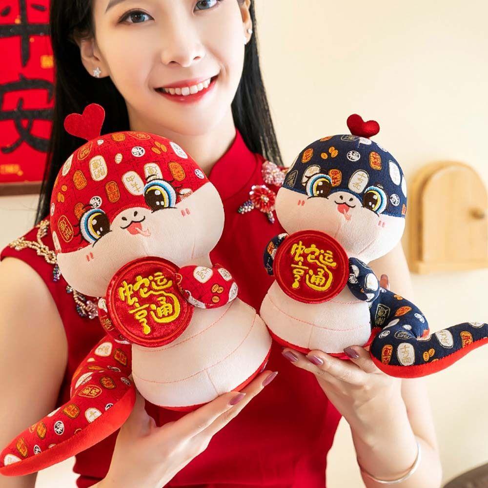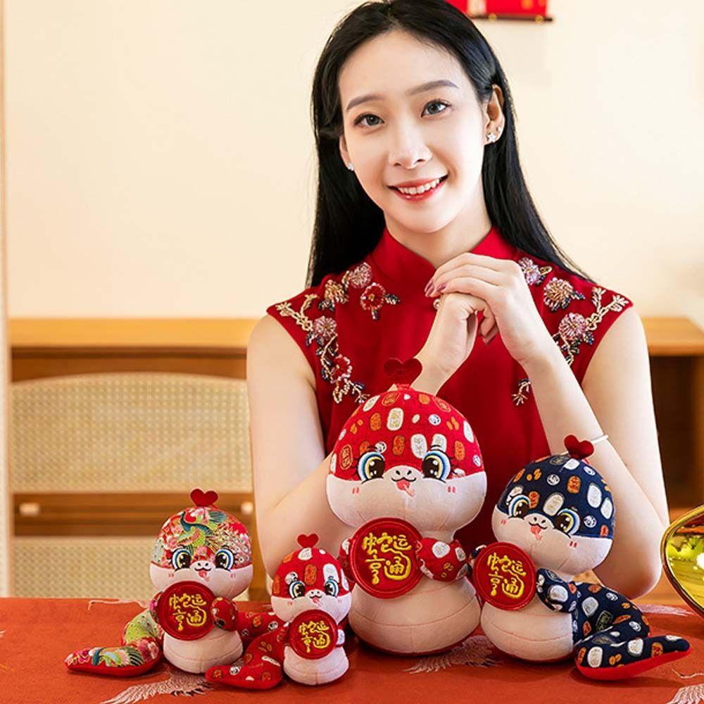 Плюшевая игрушка-талисман года змеи Милая кукла-змея на удачу Плюшевые игрушки Зодиакальная корона Кукла-змея для детей