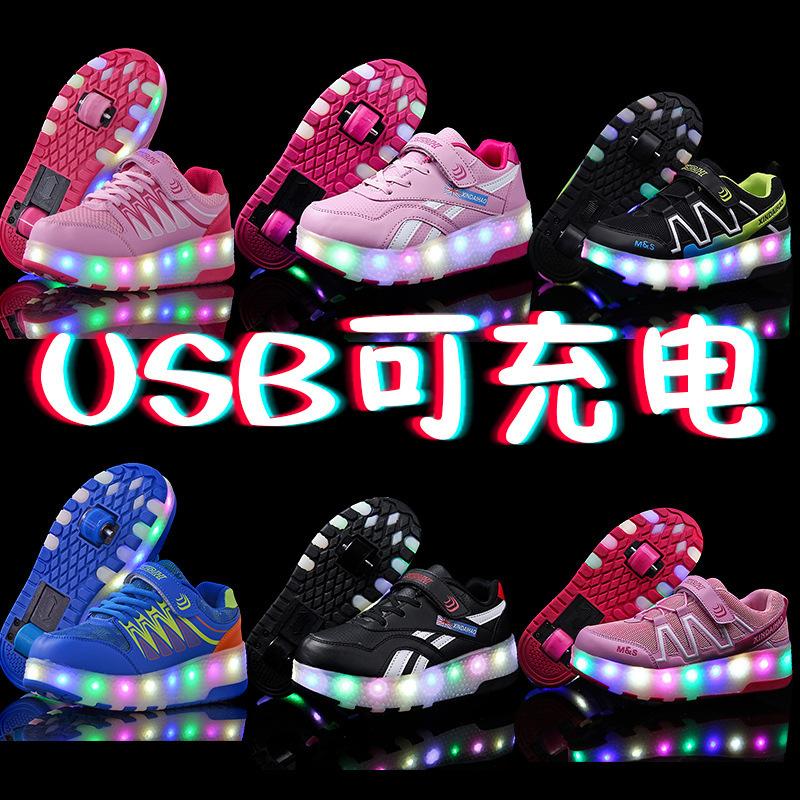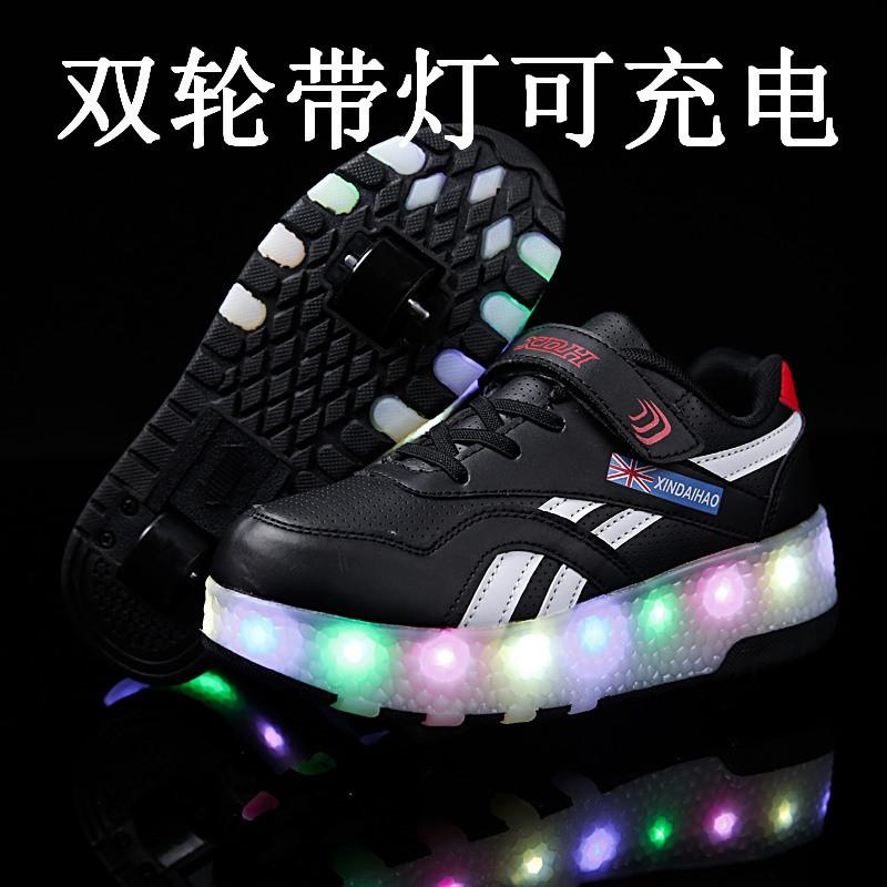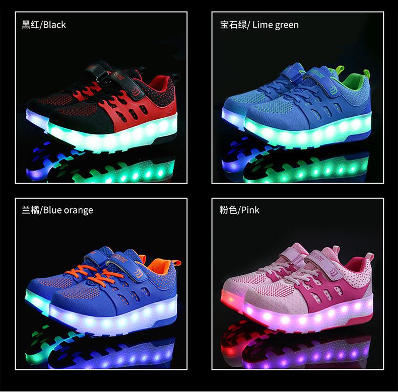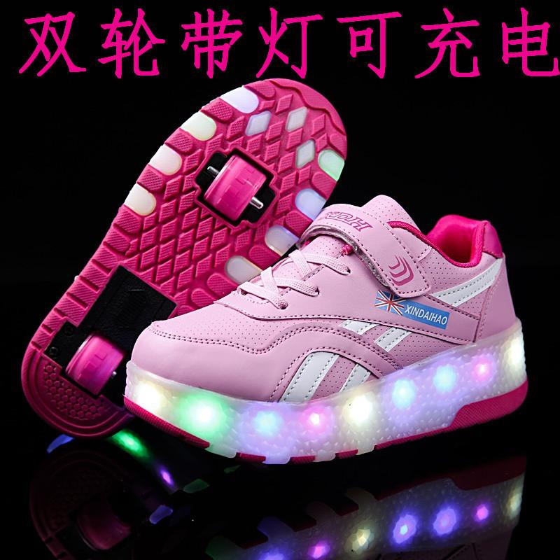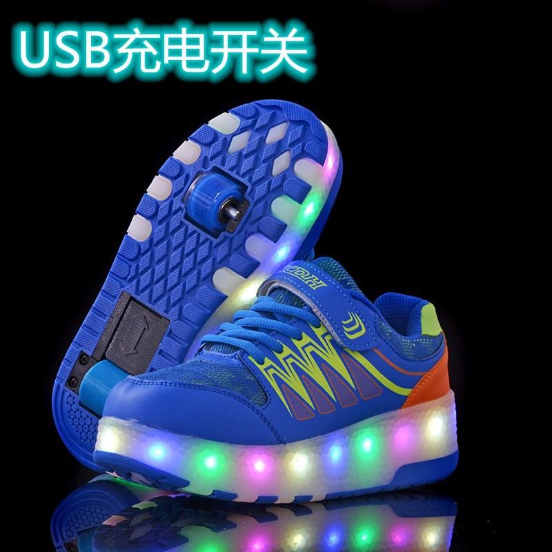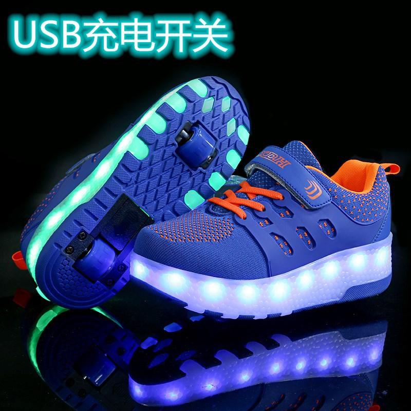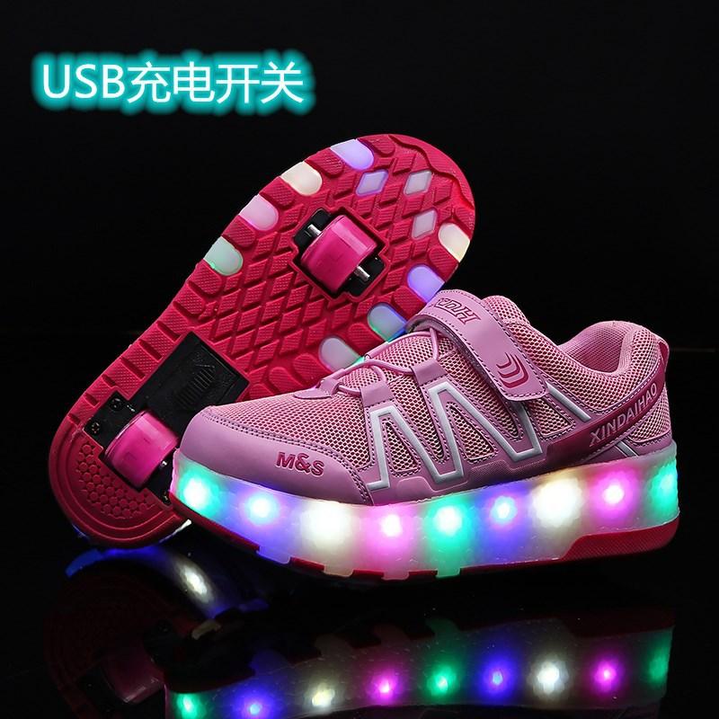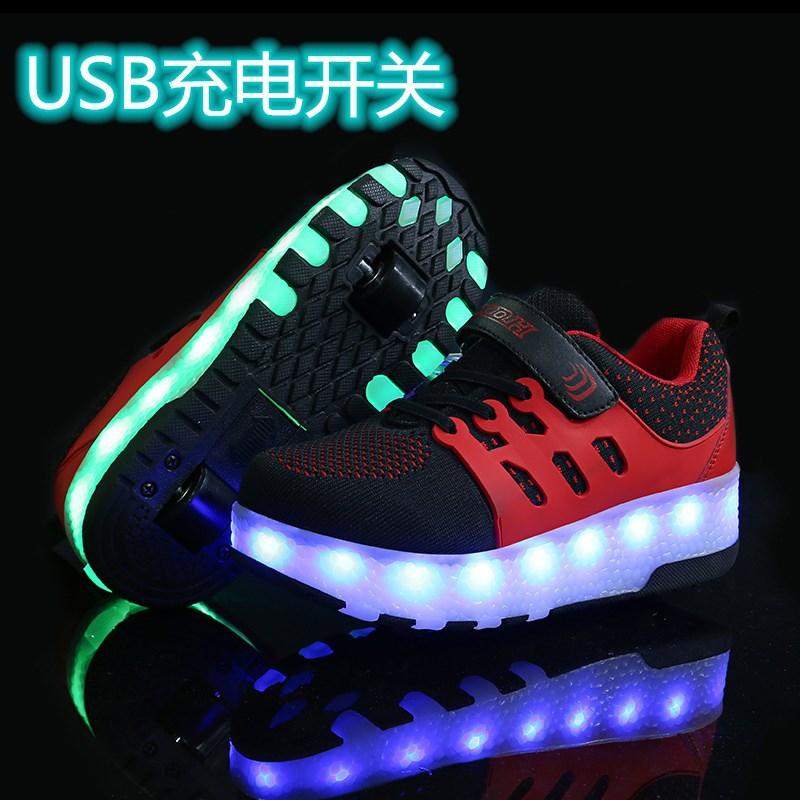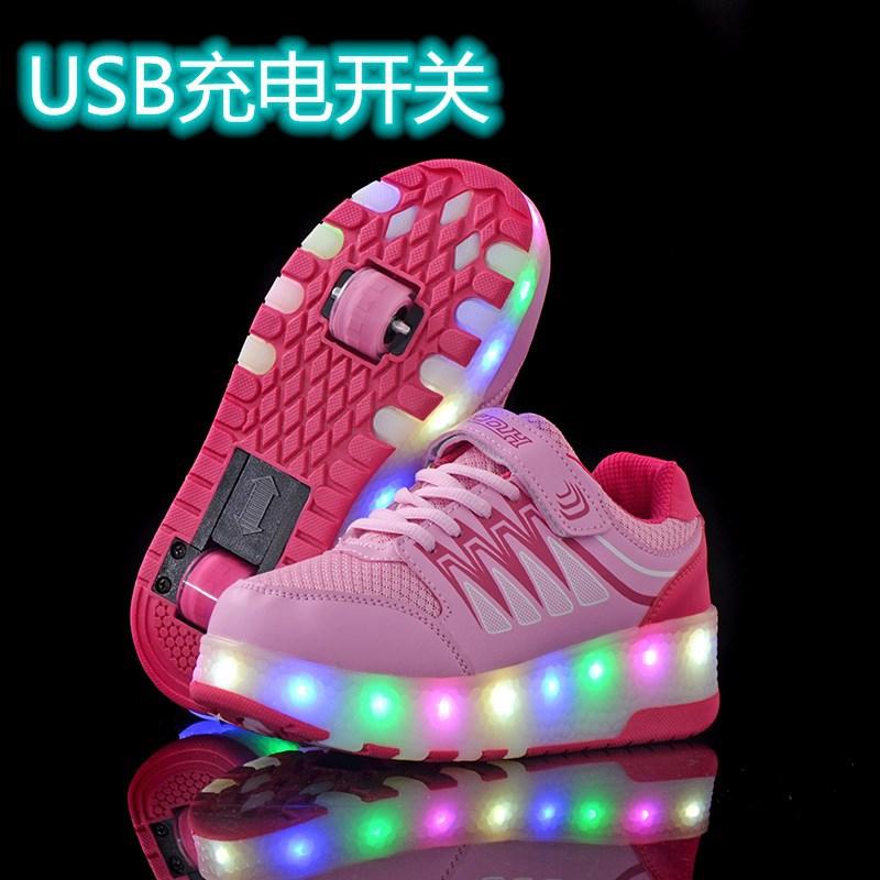 Детские двухколесные кроссовки-ролики с USB-зарядкой, светящиеся роликовые кроссовки для мальчиков и девочек