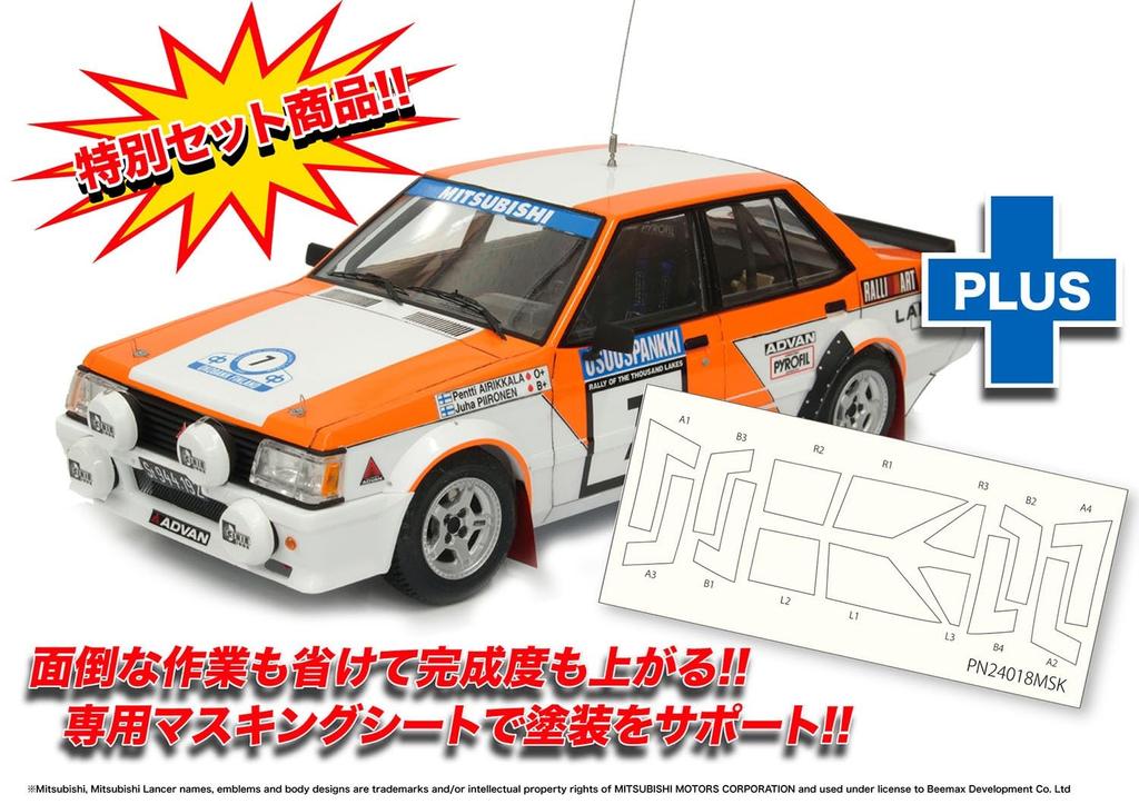 Mitsubishi Lancer Turbo 1982 Ралли 1000 озер с маскировочным листом Пластиковая модель PN24018MSK PLATZ/NUNU 1/24