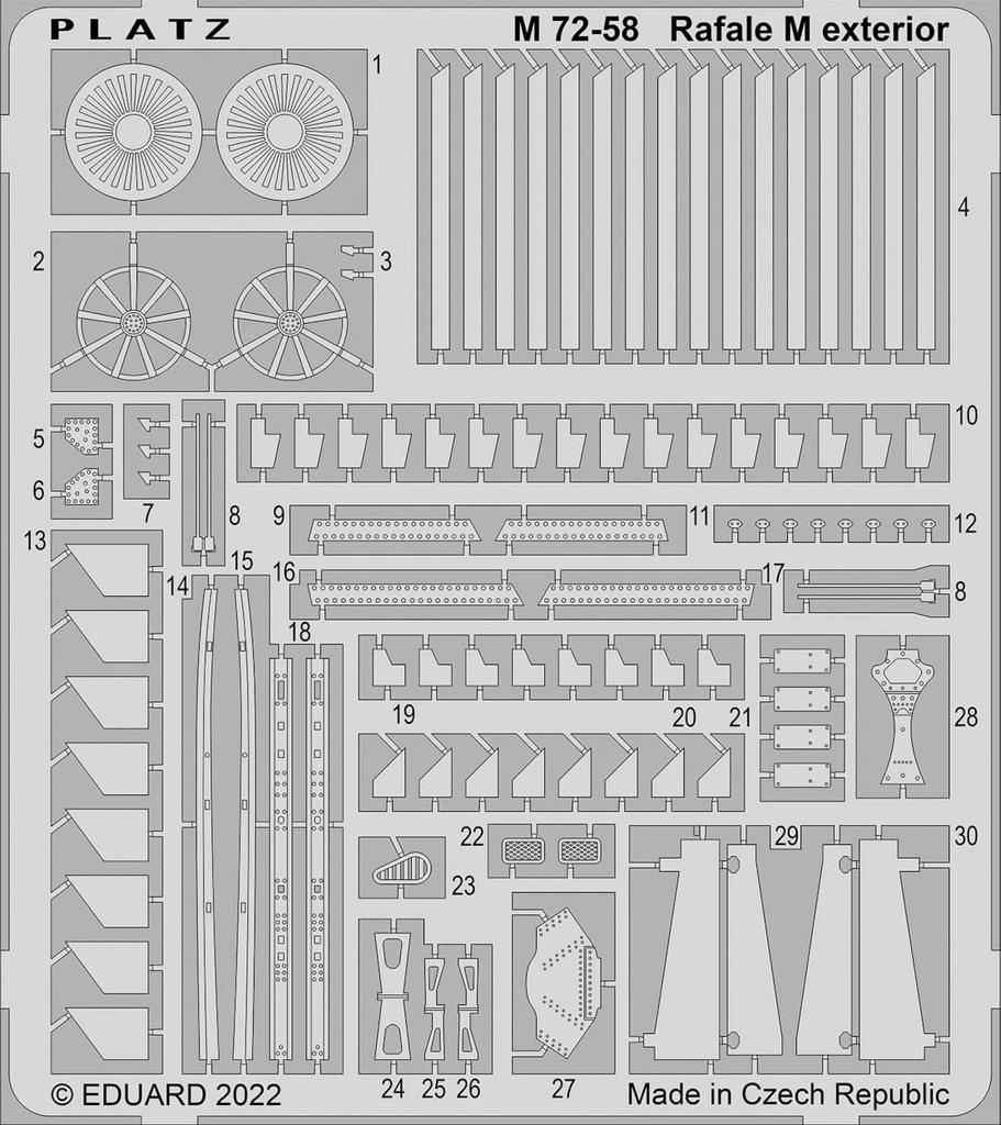 PLATZ Rafale M Фототравление для внешних пластиковых деталей модели 1/72 M72-58