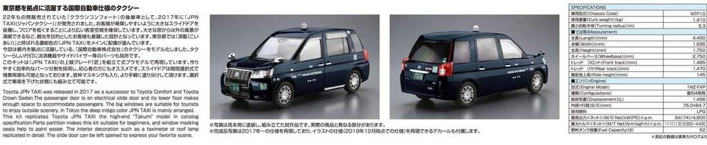 Aoshima Bunka Kyozai The Model Car Series SP Toyota NTP10 JPN Taxi 2017 International Automobile Specification Plastic Model 1/24