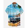 Классические гавайские рубашки с короткими рукавами и принтом в стиле тики-клуба для девушек-хула и ретро-автомобилей для мужчин, модные гавайские рубашки, пляжные блузки
