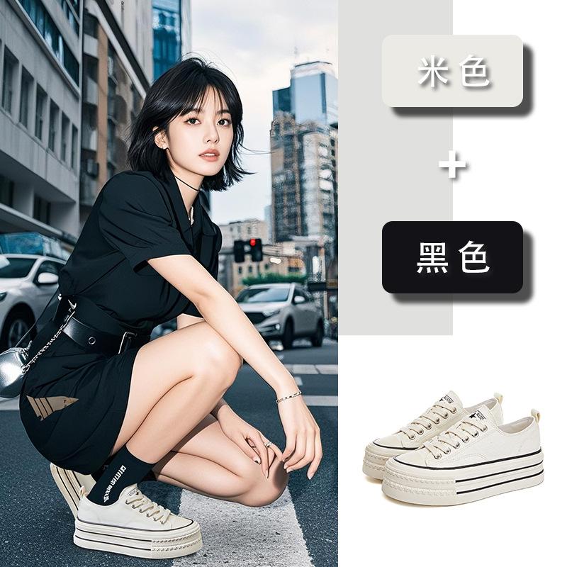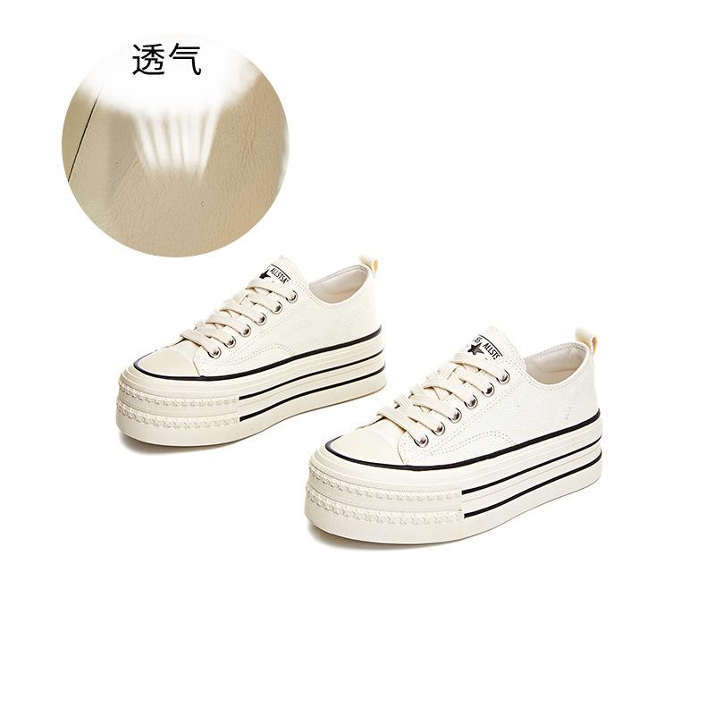 Туфли женские белые из овчины wula pad, весна 2025, новые, на толстой подошве, увеличивающие рост, парусиновые туфли, повседневные, универсальные, кексовые туфли