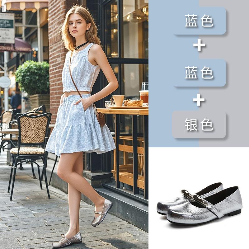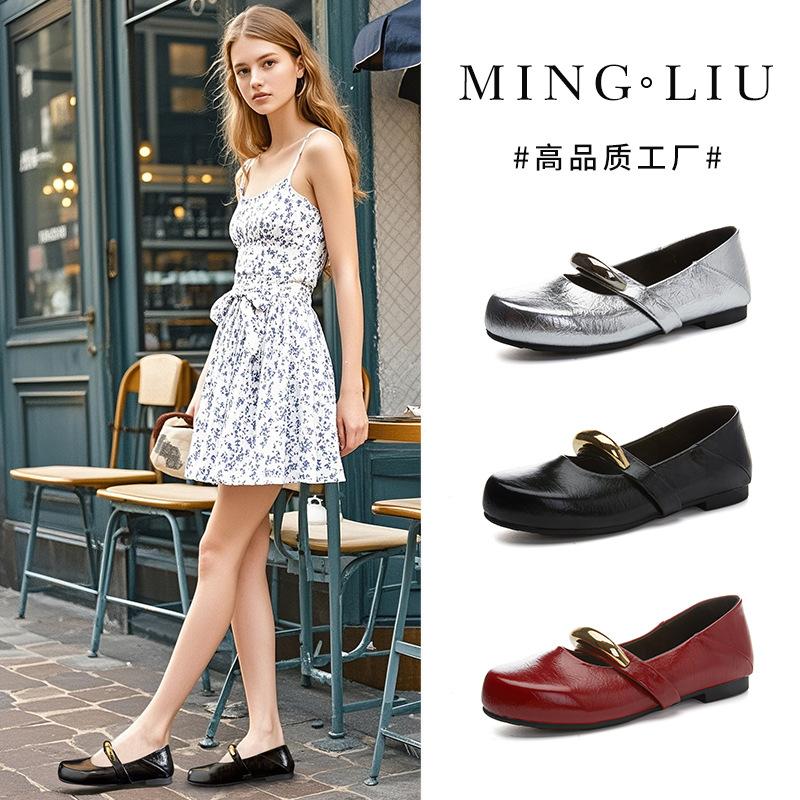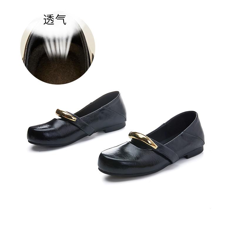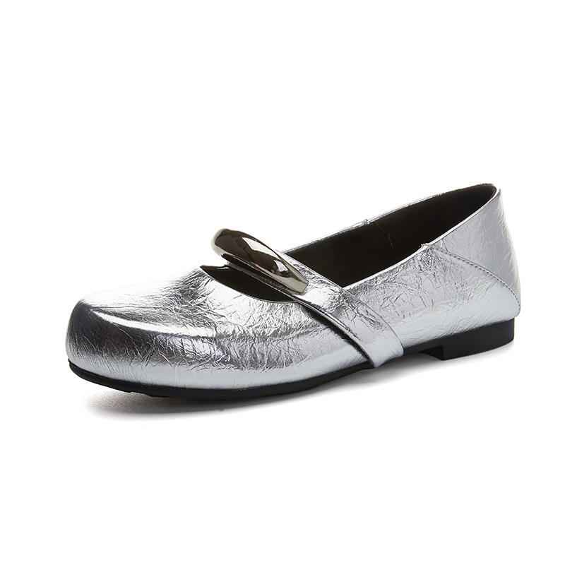 Кожаные туфли Мэри Джейн женские летние 2025 года новые плоские туфли с металлическим ремешком женские ретро темпераментные повседневные женские туфли