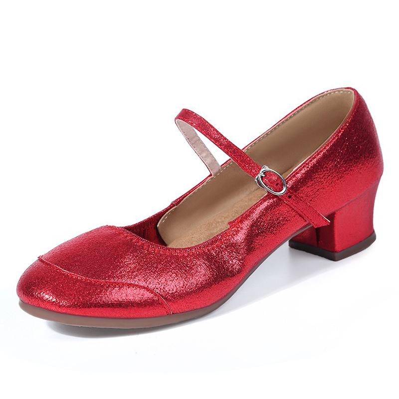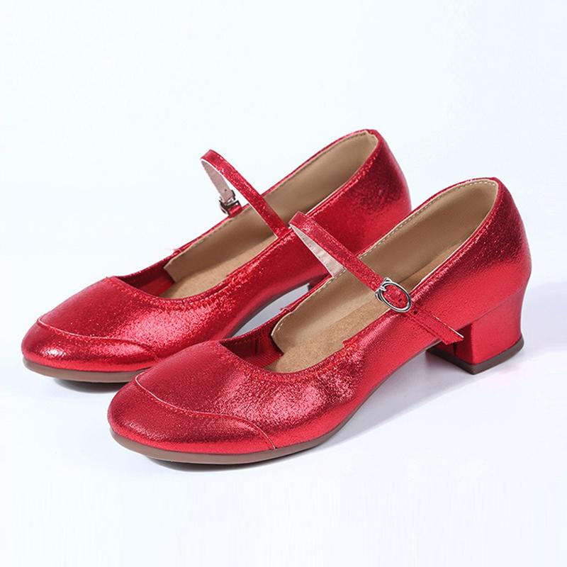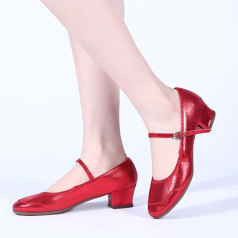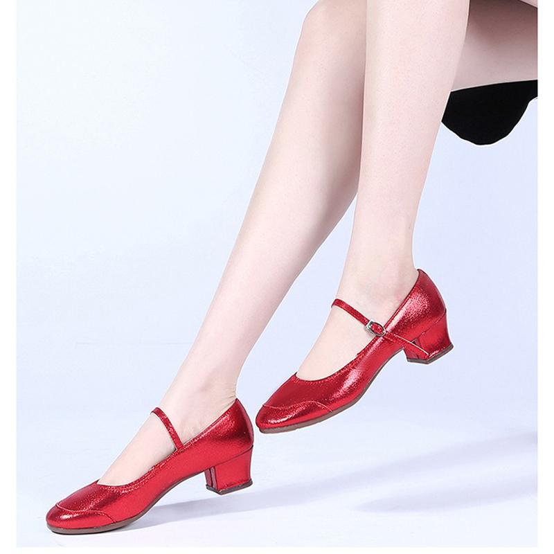 Размер 34-42, женские туфли для современных танцев из полиуретана, золотистые, с закрытым носком, для начинающих, туфли Мэри Джейн на низком каблуке