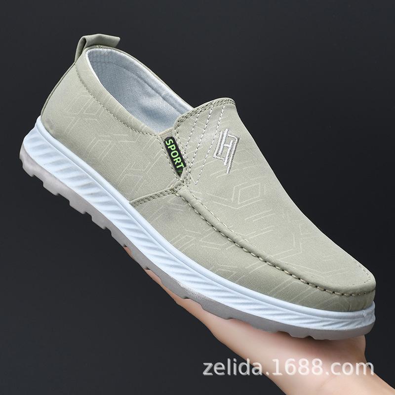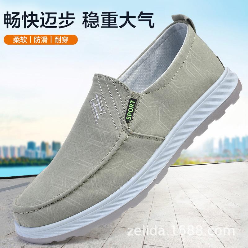 Мужская обувь 2024 года, весна, новые удобные дышащие тканевые туфли с одной педалью, тканевые туфли с мягкой подошвой для отцов среднего и пожилого возраста, повседневная обувь