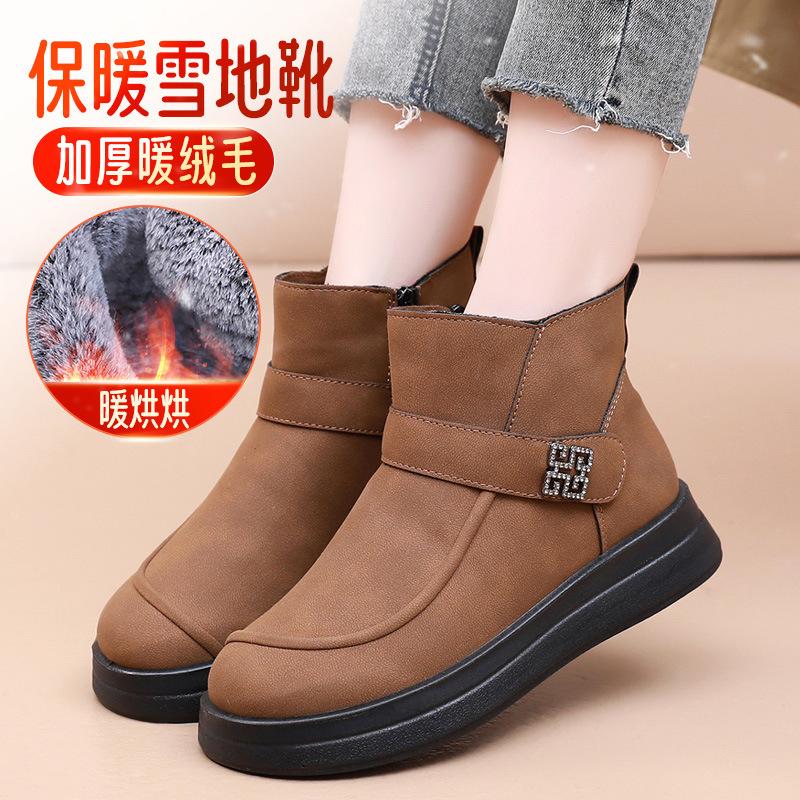 2025 зима новые туфли для мамы старые пекинские тканевые туфли высокие хлопковые туфли женские для среднего и пожилого возраста бархатные теплые на платформе короткие ботинки