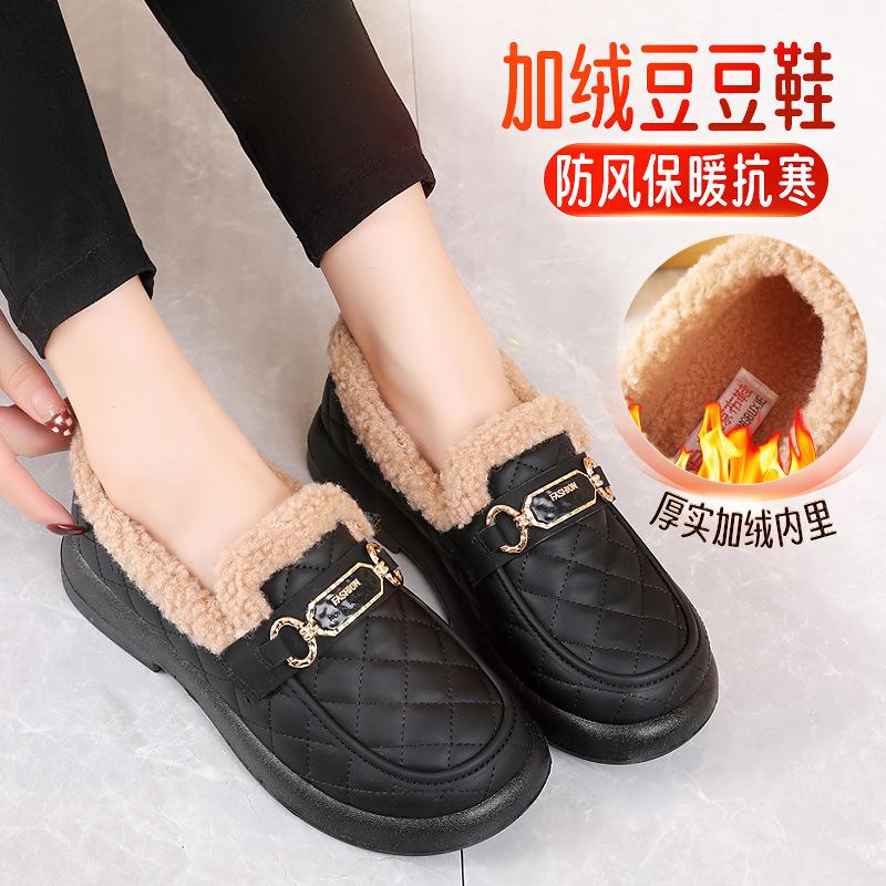 Старые пекинские хлопковые туфли, женская зимняя одежда 2025 года, новые бархатные утолщенные мокасины с одной педалью, модные теплые туфли Doudou