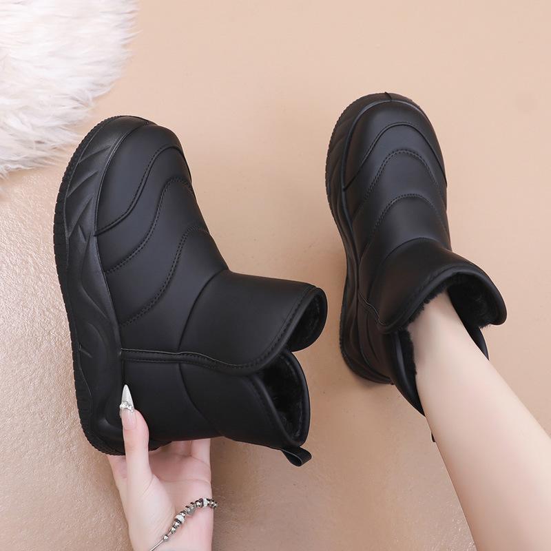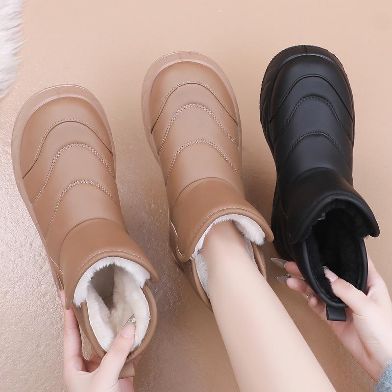 Женские зимние ботинки на толстой подошве 2025 новая зимняя бархатная теплая хлопковая обувь Северо-Востока водонепроницаемая и нескользящая обувь-буханки короткие ботинки