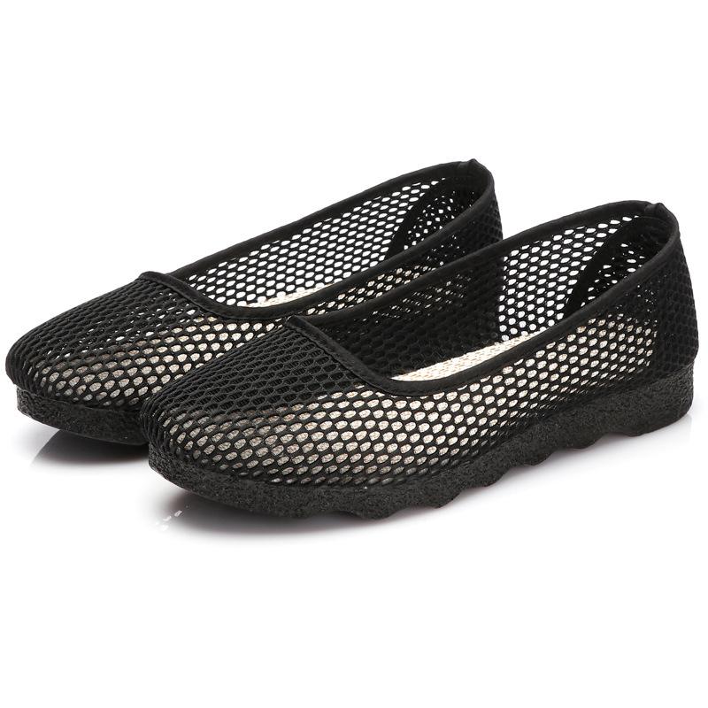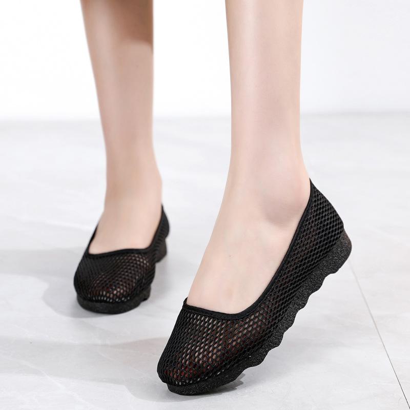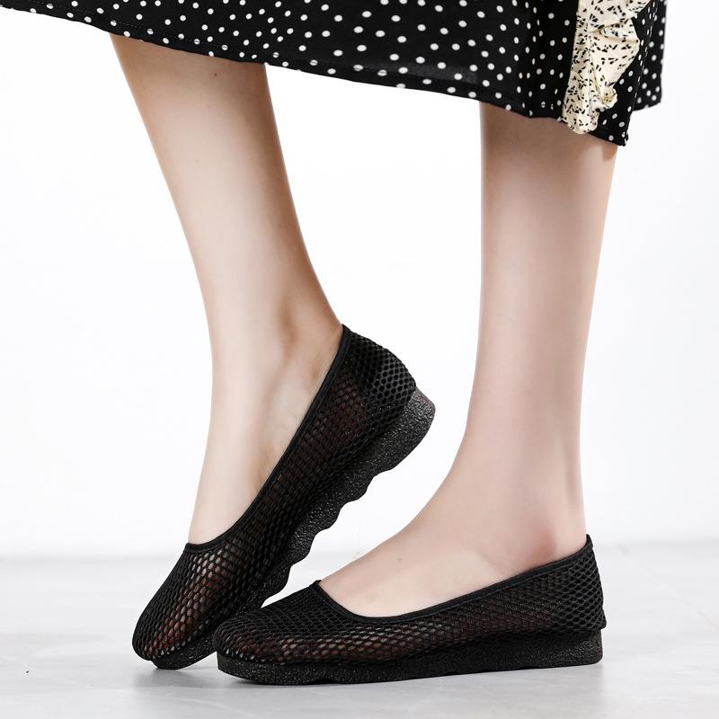 Летние женские сетчатые туфли с одной педалью, черные рабочие туфли, дышащая мягкая сетчатая женская обувь, удобные сетчатые полые туфли для мам