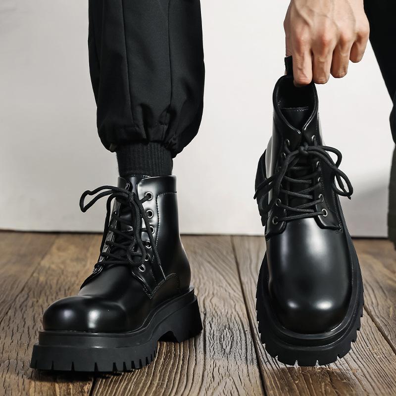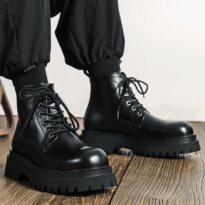 Черные ботинки Мартина на платформе мужские весна и осень 2025 новые британский стиль французский интернет-знаменитость популярные короткие ботинки 70044-M