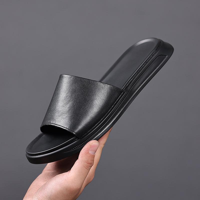 Тапочки из коровьей кожи, мужская летняя одежда, кожаные, одно слово, перетаскивание, высококачественные, модные, брендовые, мужские, нескользящие, простые тапочки 1400-K