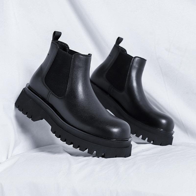 Ботинки Мартин мужские в британском стиле, высокие, рабочие ботинки, кожаные ботинки Челси мужские, увеличивающие рост, трендовые мужские ботинки 182182-R — купить товар онлайн с бесплатной доставкой до всему миру!