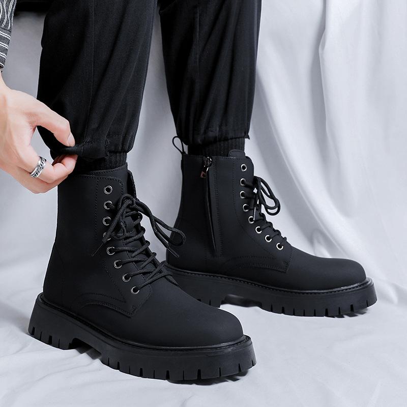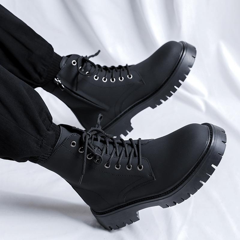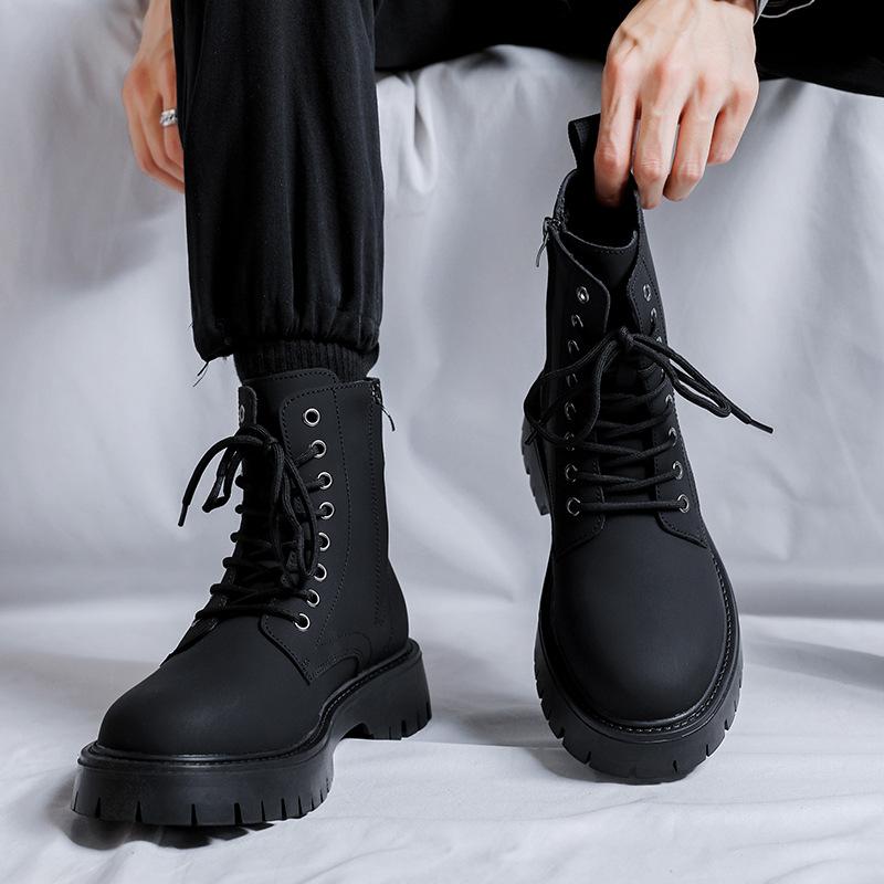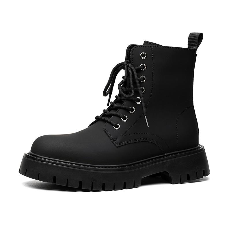 2025 осень и зима новые черные кожаные ботинки средней высоты мужские британские восьмидырочные ботинки Мартин на толстой подошве с высоким берцем 3308-R