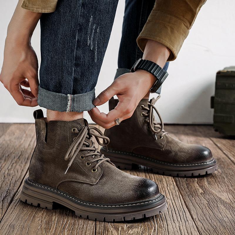 Ботинки мартин мужские полувысокие ботинки в стиле милитари британский стиль новые короткие ботинки универсальные высокие модные ботинки корейская версия ботинки 4514-M