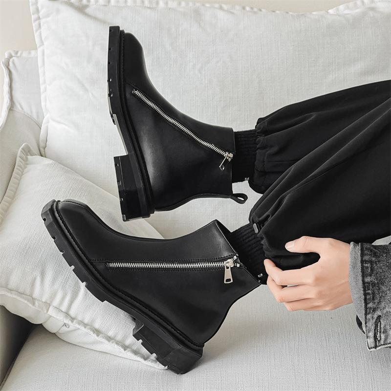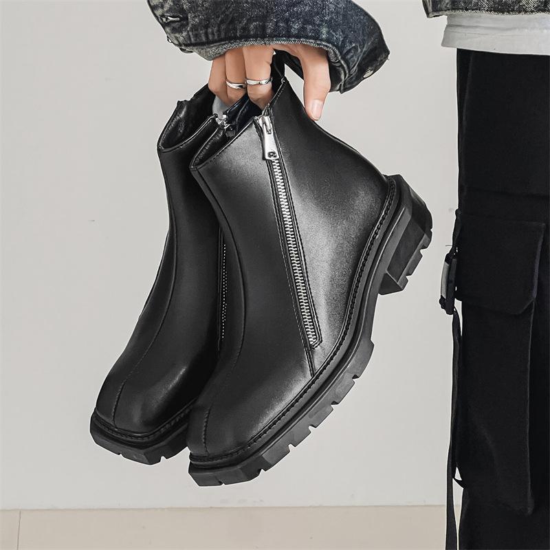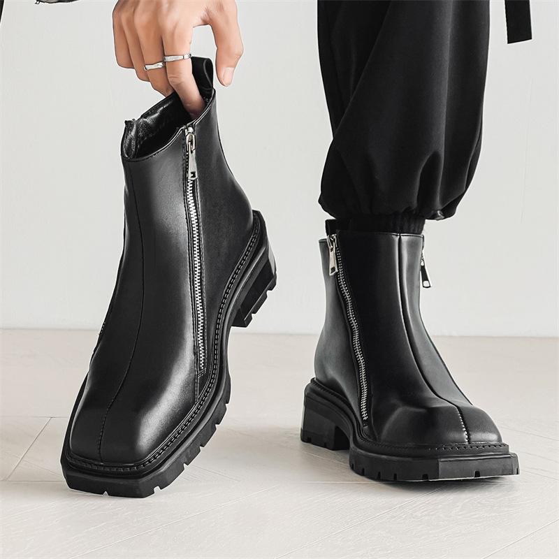 Корейская версия ботинок «Челси» на молнии, модные ботинки «Мартин» в британском стиле на платформе с квадратным носком, мужские кожаные туфли средней высоты 4512-J