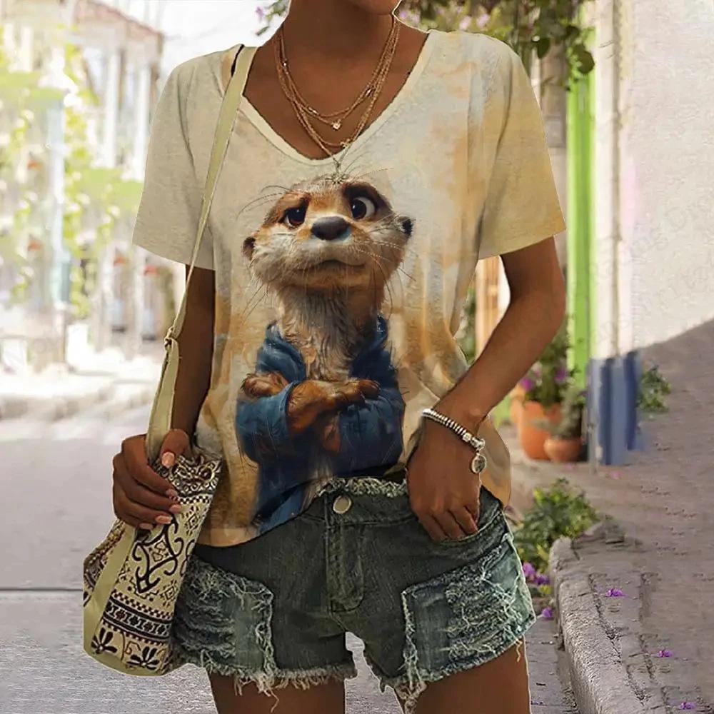3D-печать, женские футболки, V-образный вырез, свитера, свободные, короткий рукав, длинная футболка, повседневная, диагональный воротник, уличная одежда