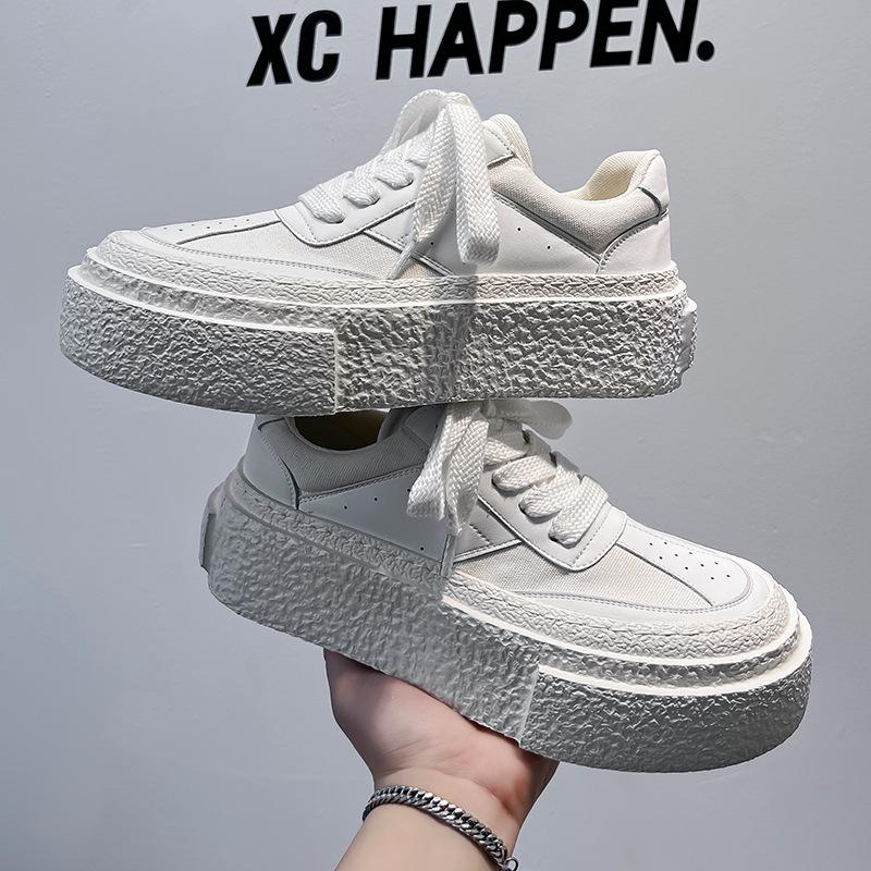 Маленькие белые туфли на толстой подошве, мужские, 2024, новые универсальные туфли на шнуровке, бисквитные туфли, увеличивающие высоту подошвы, повседневные туфли 50557-A