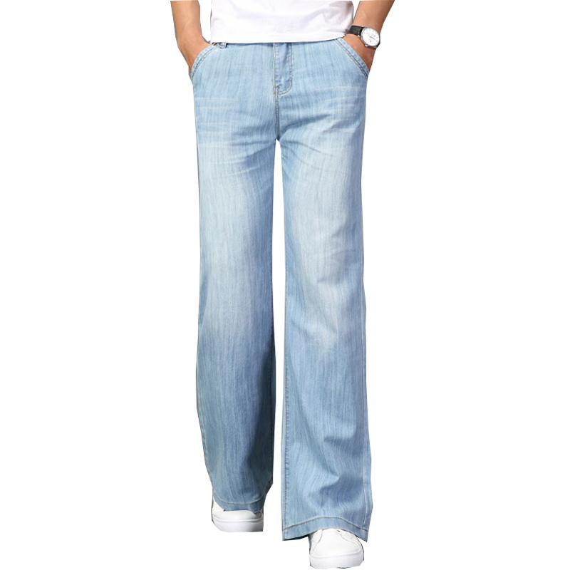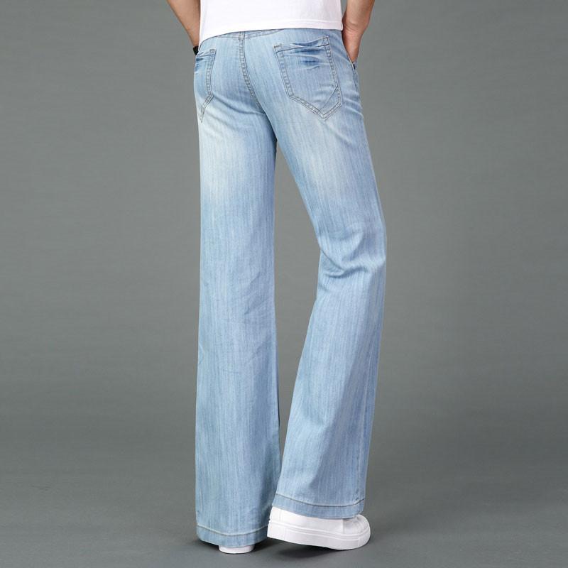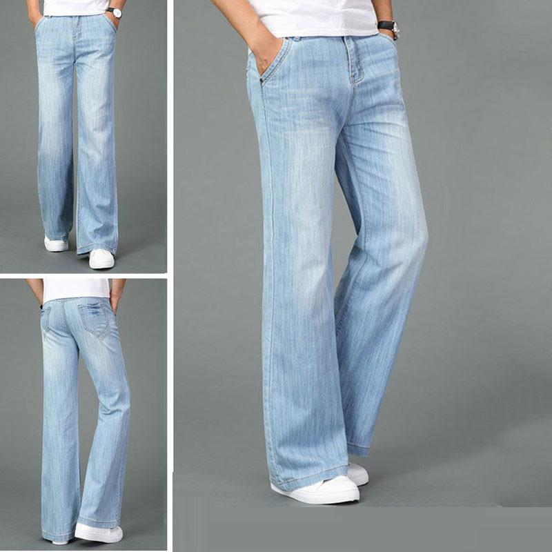 Мужские джинсы-клеш, расклешенные, свободного кроя, со средней талией, светло-голубые джинсы из денима