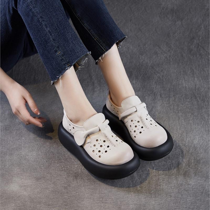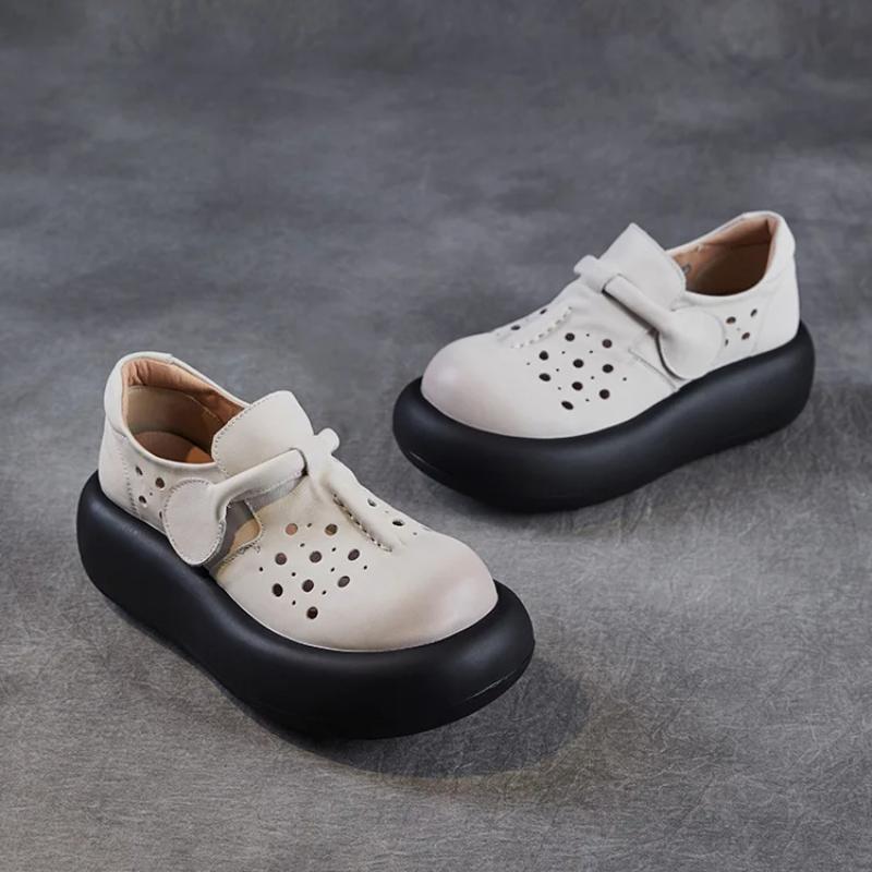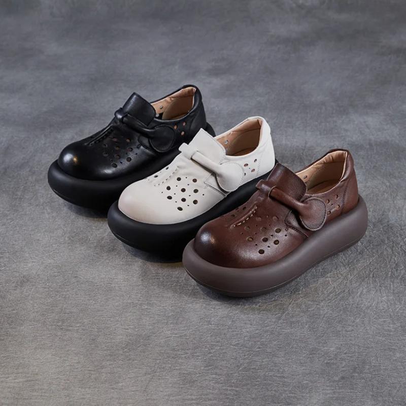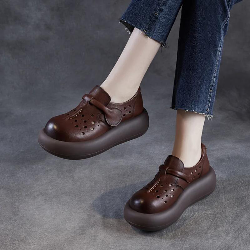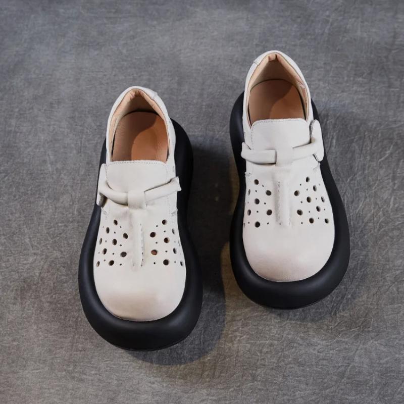 Johnature Женские туфли с толстой подошвой и выемками. Босоножки на платформе из натуральной кожи с круглым носком.