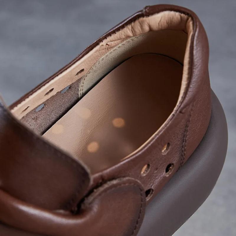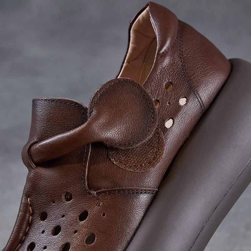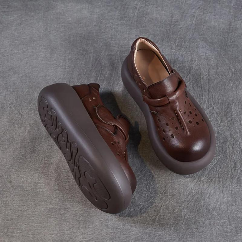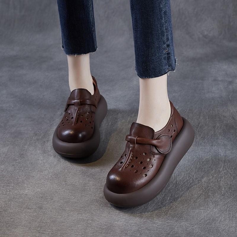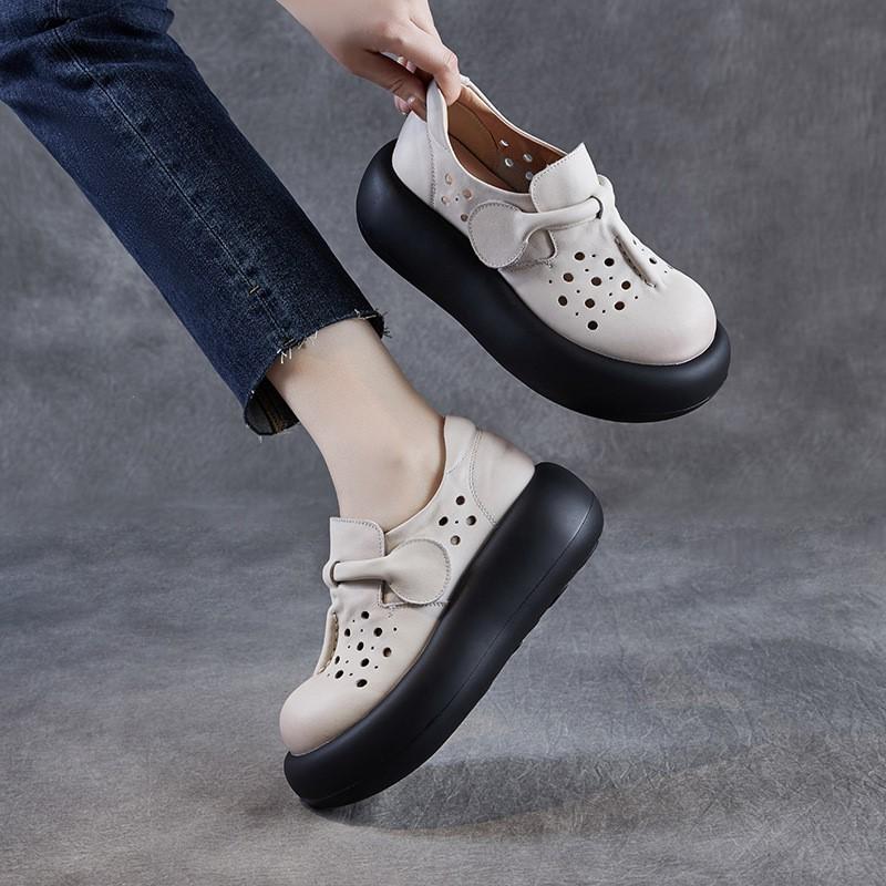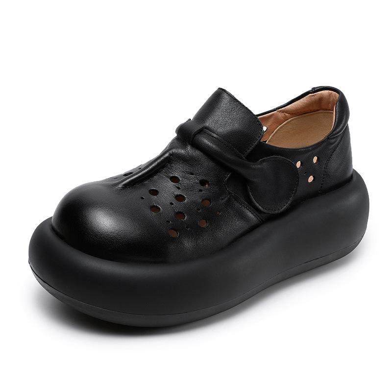 Johnature Женские туфли с толстой подошвой и выемками. Босоножки на платформе из натуральной кожи с круглым носком.