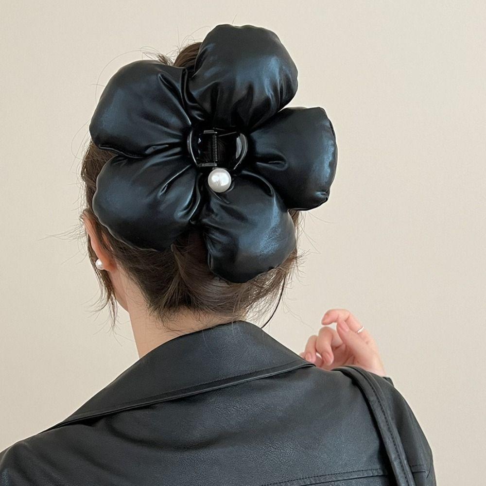 Pearl Sponge Puff Flower Hair Claw Korean Style Exaggerated Crab Clip Scrunchies Shark Clip Daily