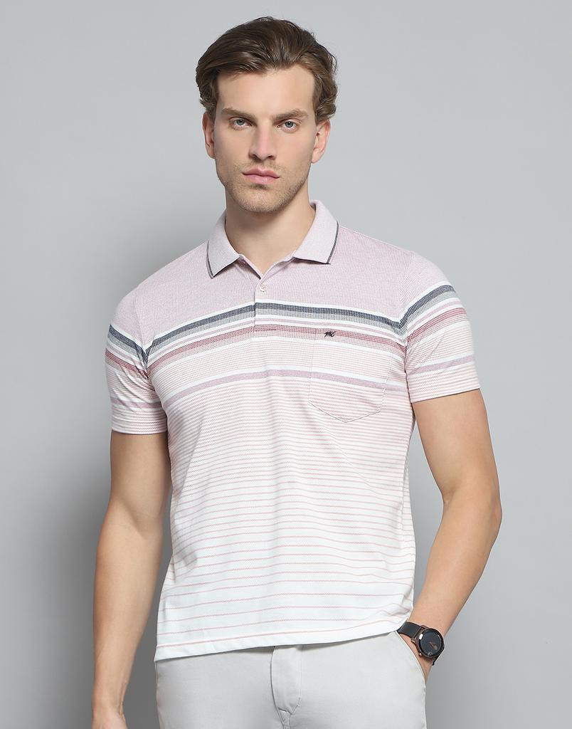 MONTE CARLO Мужская полосатая футболка с розовым воротником и рукавом три четверти