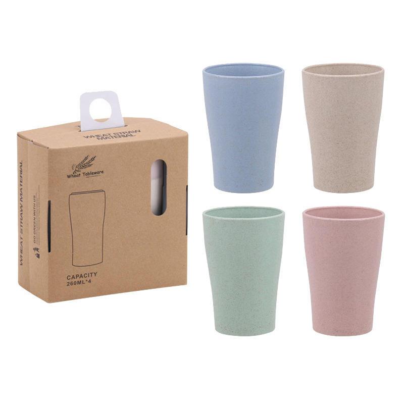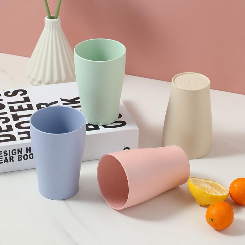 Набор из 4 шт./Набор Портативная чашка для питьевой воды из пшеничной соломы, чашка для мытья, простая бытовая, для взрослых и детей, пластиковая, защита от падения, стакан для зубной щетки