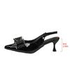 Женские остроносые босоножки на высоком каблуке 2025 новая обувь со стразами и бантом большого размера на тонком каблуке с закрытым носком