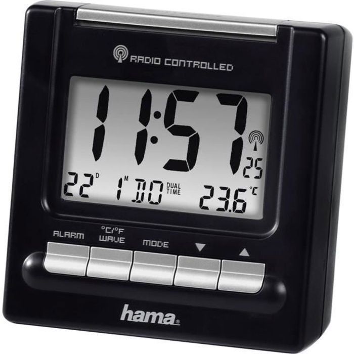 Réveil radiopiloté - hama - rc200 - noir - horloge intégrée - tuner radio - radio-réveil