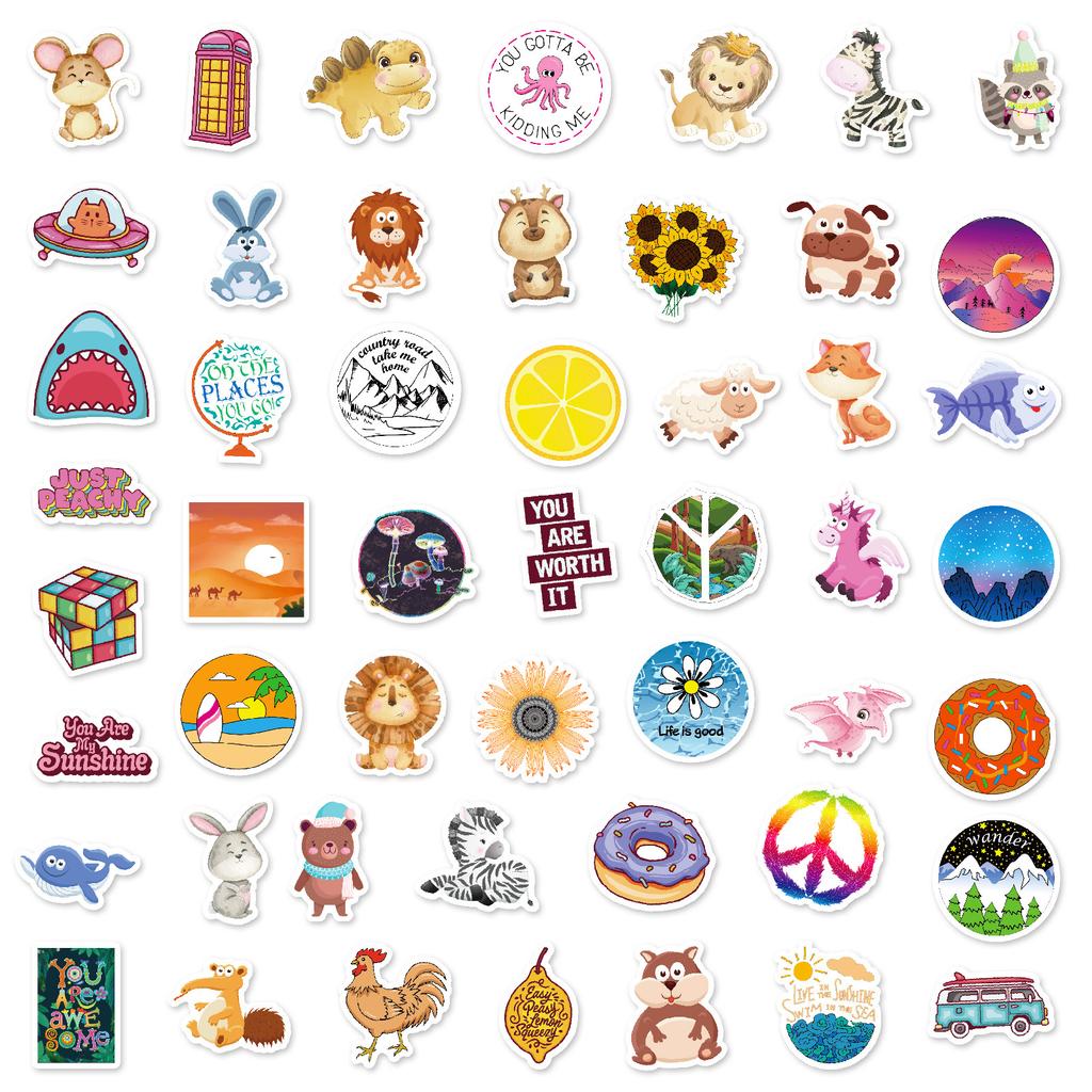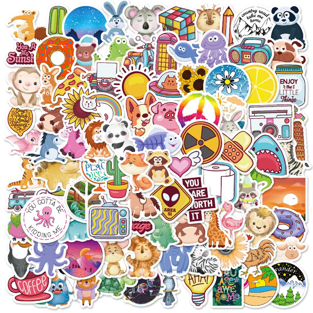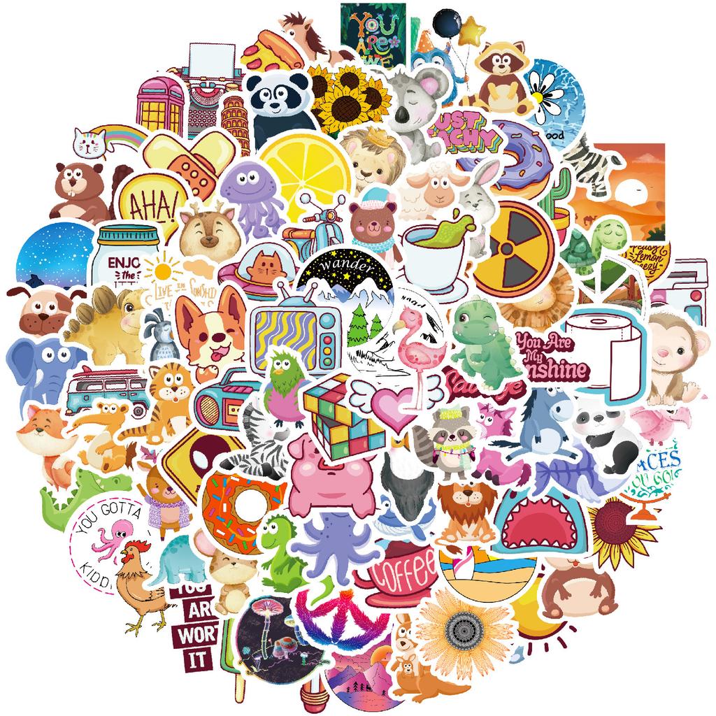 100 Мультфильмов Сяоцин Животные Цветы Еда Смешивай и Сочетай Наклейки Декоративные Мобильный Телефон Планшет Водонепроницаемые