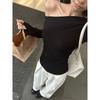 Новая женская футболка с длинным рукавом для чистой весны и осени, облегающая, с узким воротником, с открытыми плечами, облегающий низ, топ