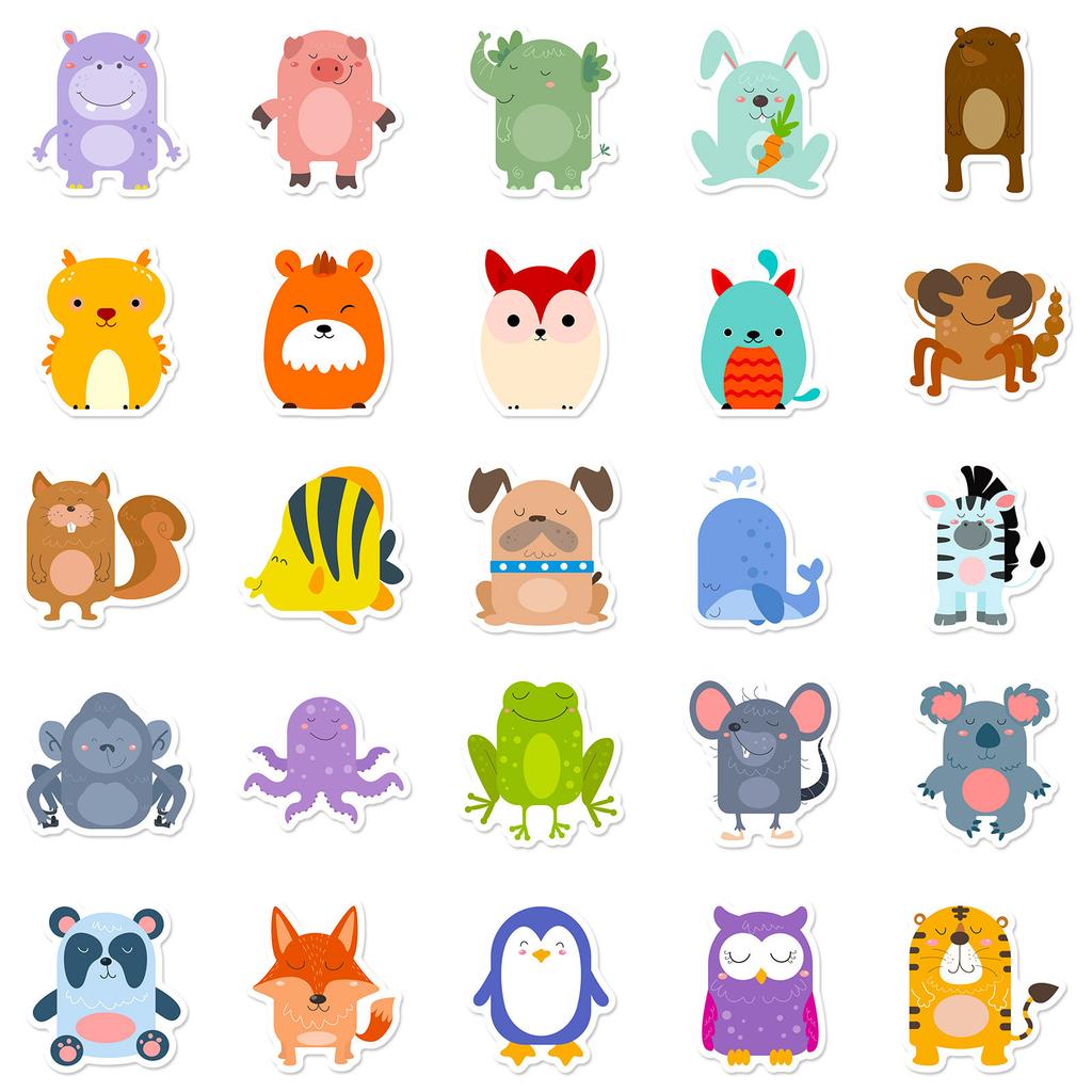 50 круглых наклеек с животными Милые мультяшные забавные круглые наклейки с животными Граффити