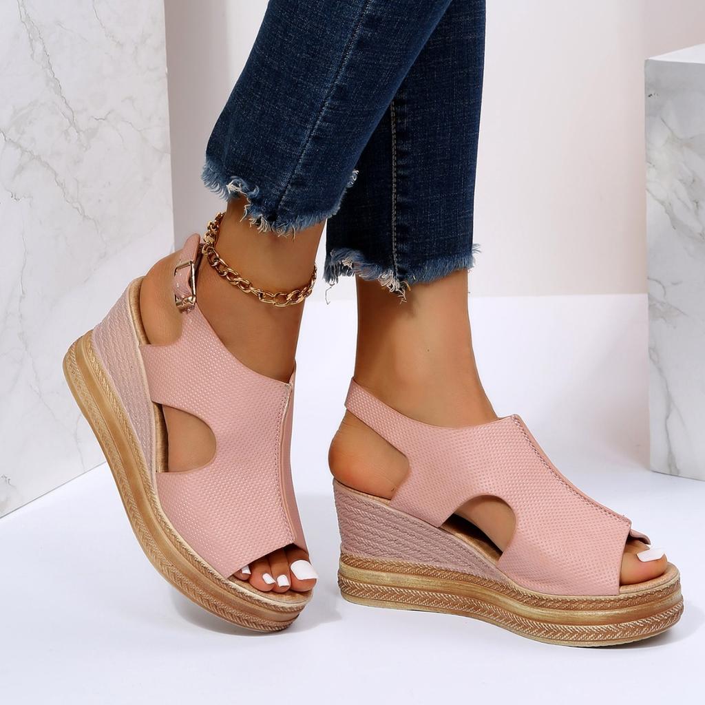 Большие повседневные босоножки на танкетке для женщин, лето 2025, новые босоножки с толстой подошвой и принтом «рыбий рот» для женщин