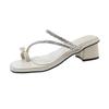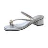 Сказочный ветер толстый каблук открытый носок жемчуг стразы крутые тапочки женская обувь 2025 лето новый средний каблук крутые тапочки женские