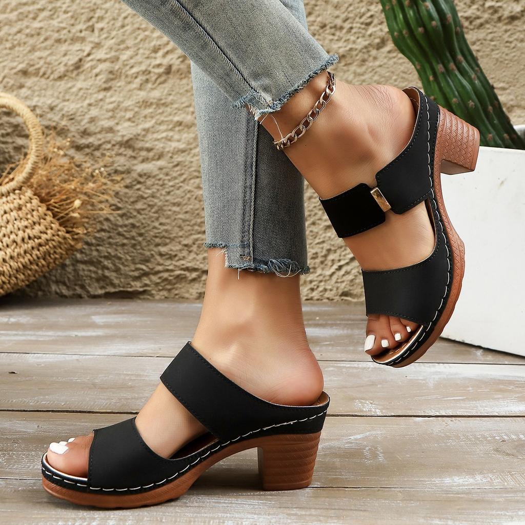 Большие повседневные тапочки с открытым носком и высоким каблуком для женщин, лето 2025, новые классные тапочки на толстом каблуке для пляжа