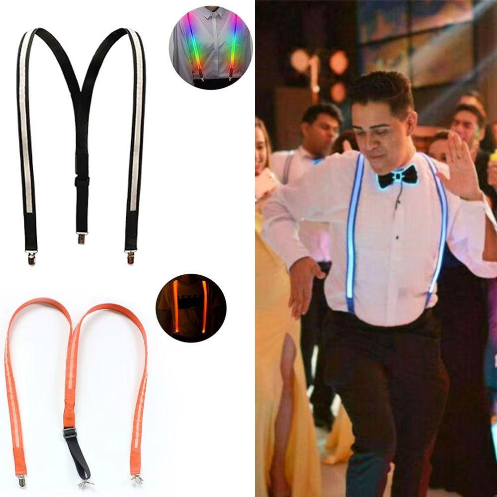 Light Up Glowing Bow Suspenders Glow in The Dark Pants Strap Clip Party Supplies