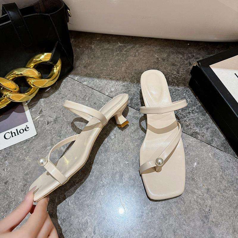 Французские маленькие ароматные тапочки большого размера на тонком каблуке, женские, лето 2025, новые квадратные головки, перламутровый носок, классные тапочки для женщин
