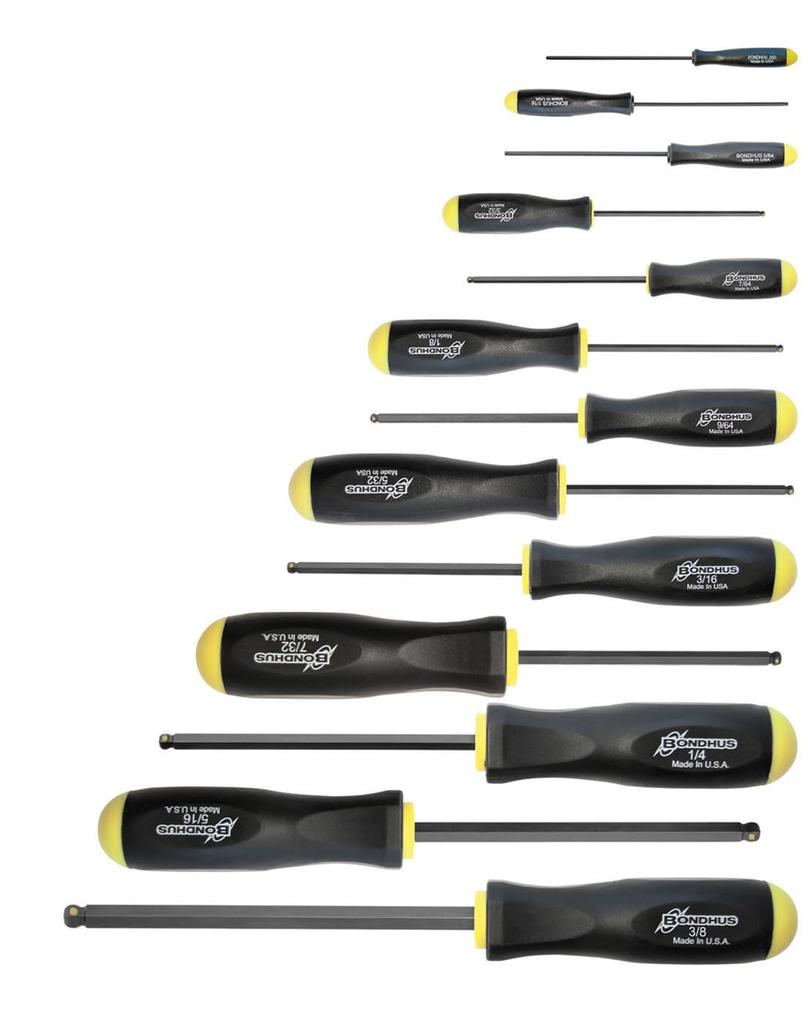 Профессиональная шестигранная отвертка с захватом винтов, черный набор PBSX13 74637 [BONDHUS] Hold® (функция драйвера) набор, отделка, 13 предметов (0.050, 1/16, 5/64, 3/32,