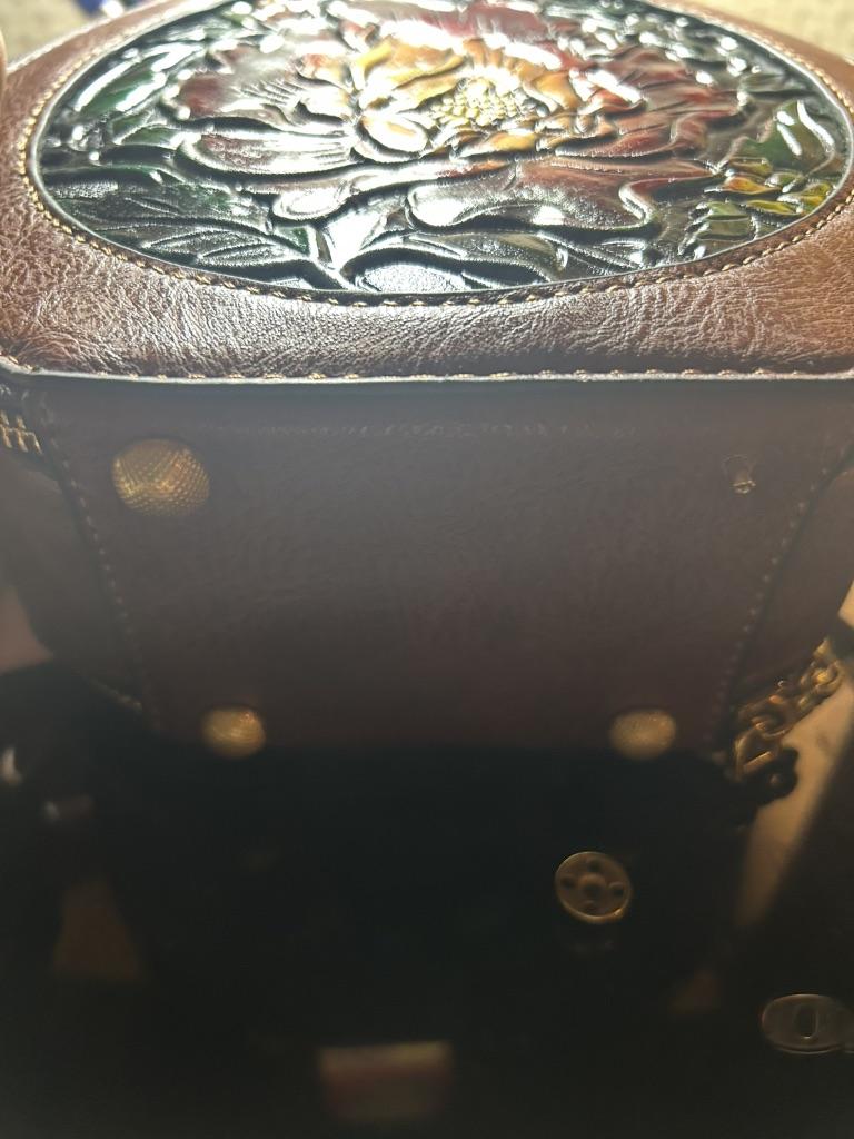 Этническая винтажная круглая сумка через плечо - женская сумка через плечо с резным цветком ручной работы, минималистичная текстура, сумка-тоут большой вместимости