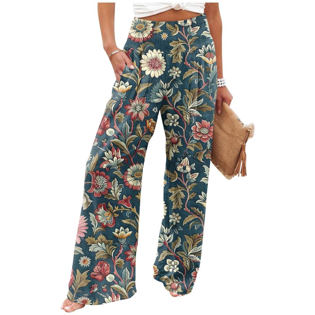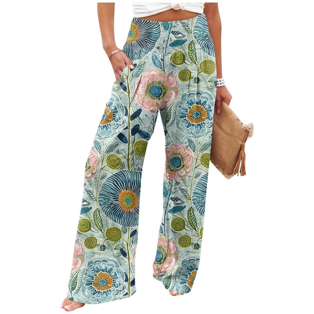 Женские летние свободные брюки из хлопка и льна с эластичным поясом и цветочным принтом