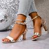 Женские босоножки на высоком каблуке с пряжкой из одного слова, лето 2025, новые женские босоножки большого размера на шпильке с открытым носком — купить товар онлайн с бесплатной доставкой до всему миру!