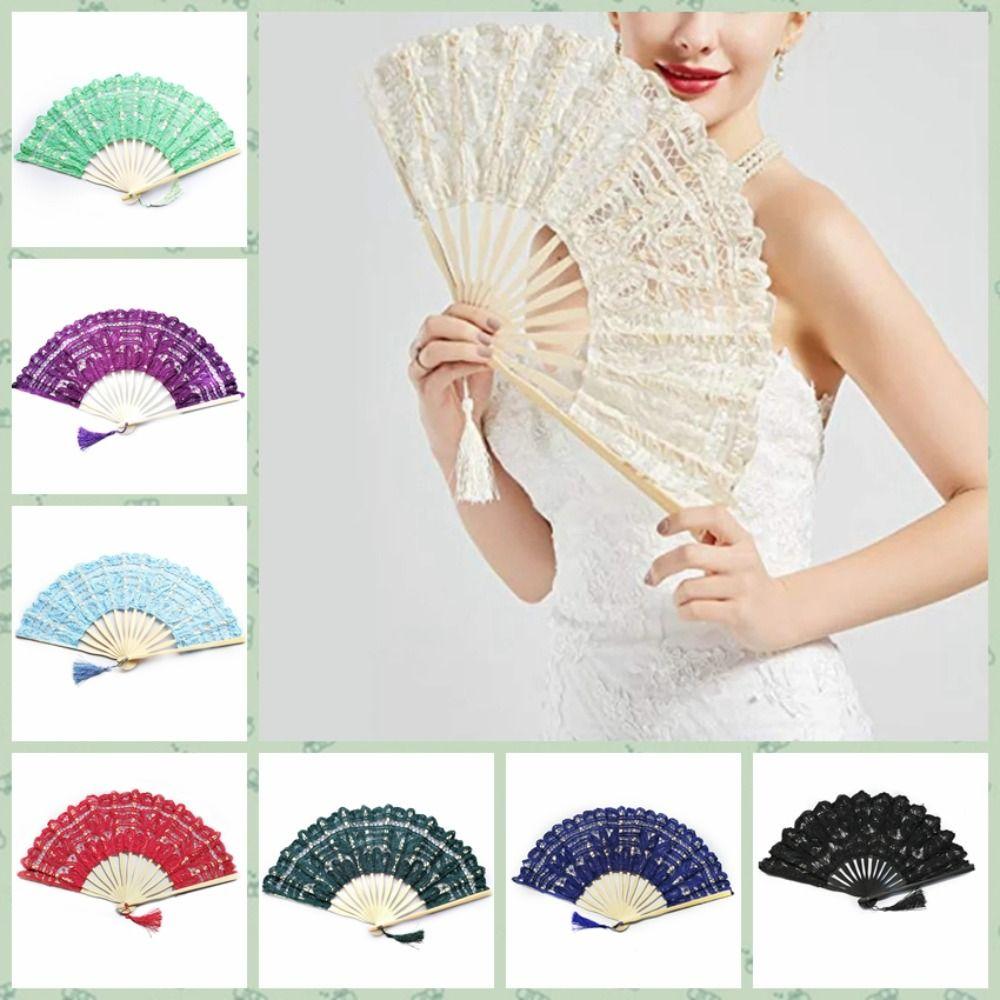 Бамбуковая ручка Винтажное кружево Ручной веер Ручной веер для танцев Искусство Ремесло Вышитый Складной веер Дамы