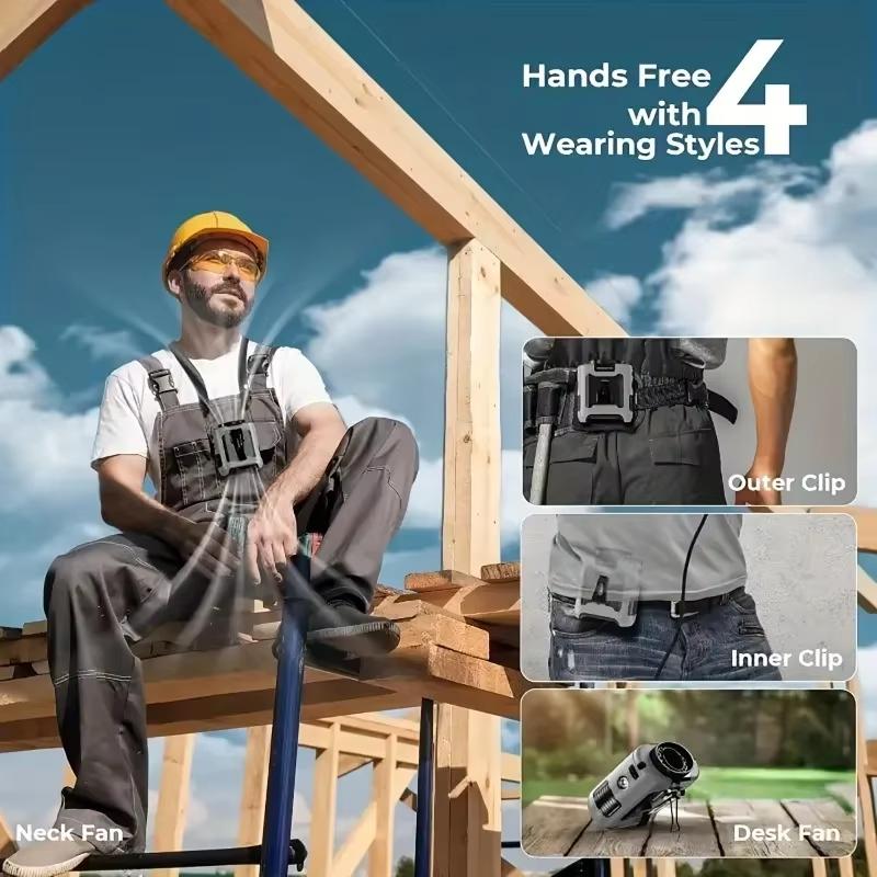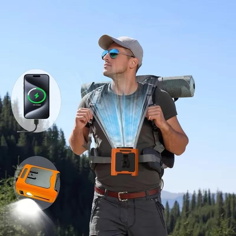 Портативный вентилятор на пояс, 6000 мАч, портативный вентилятор с возможностью подзарядки, 3 скорости, более быстрое охлаждение, 16000 об/мин и фонарик, вентилятор для шеи с функцией охлаждения без помощи рук