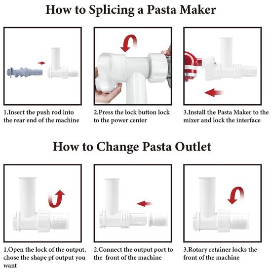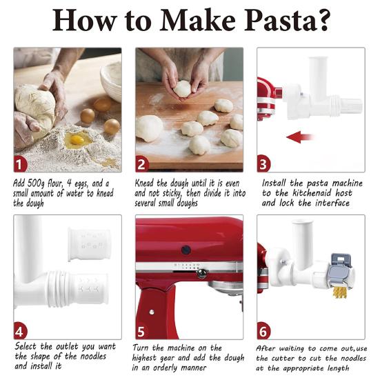 Бесшовная интеграция: Специально разработанная для миксеров с настольной кухонной утварью, эта насадка для прессования пасты легко устанавливается, оптимизируя пространство на столешнице и расширяя функциональность миксера.. Простая настройка обеспечивает быстрое и легкое приготовление пасты для занятых семей и любителей пасты.