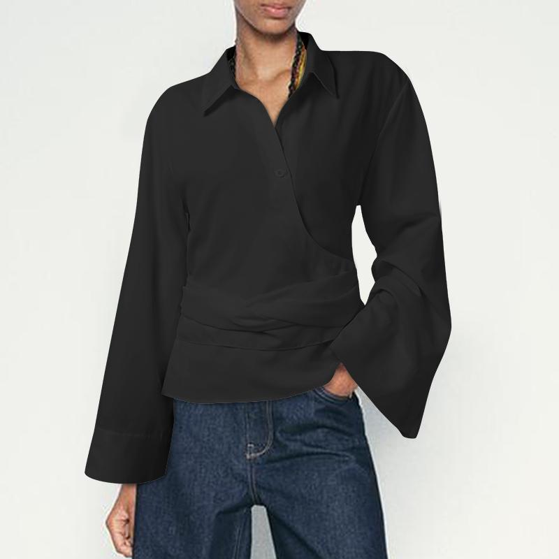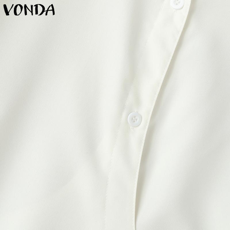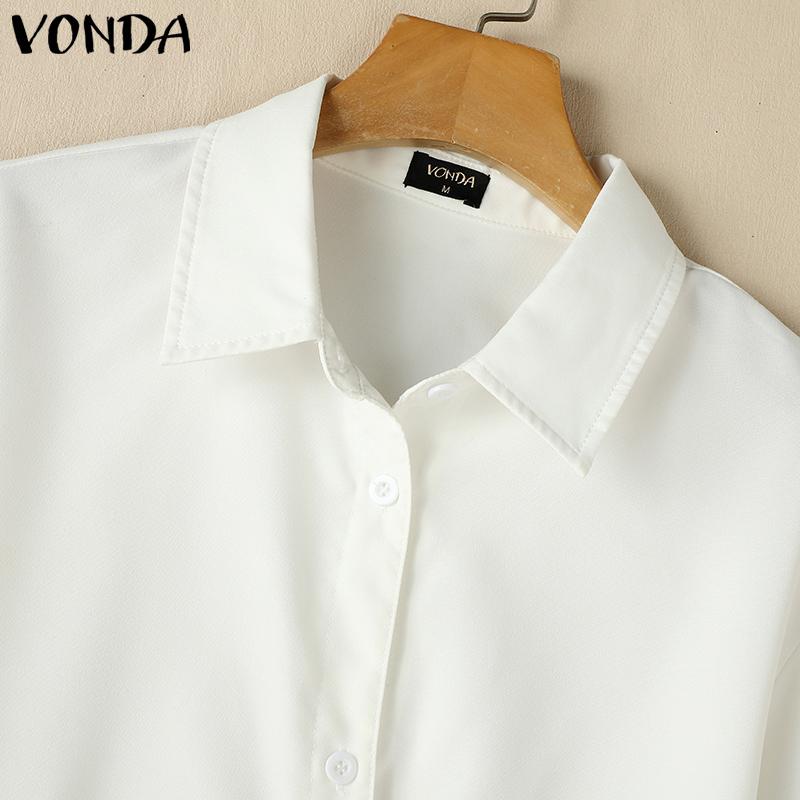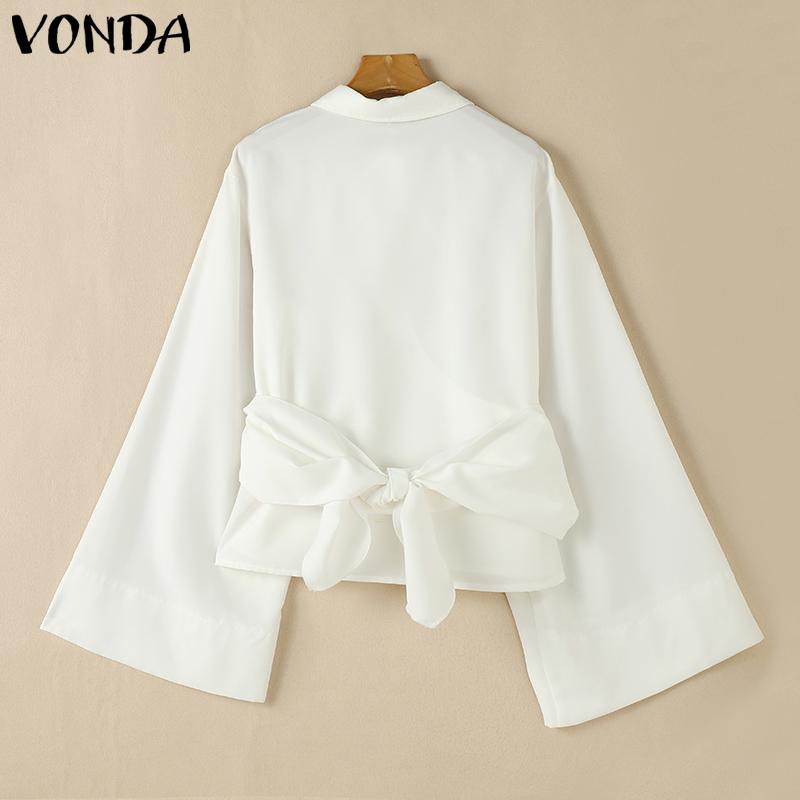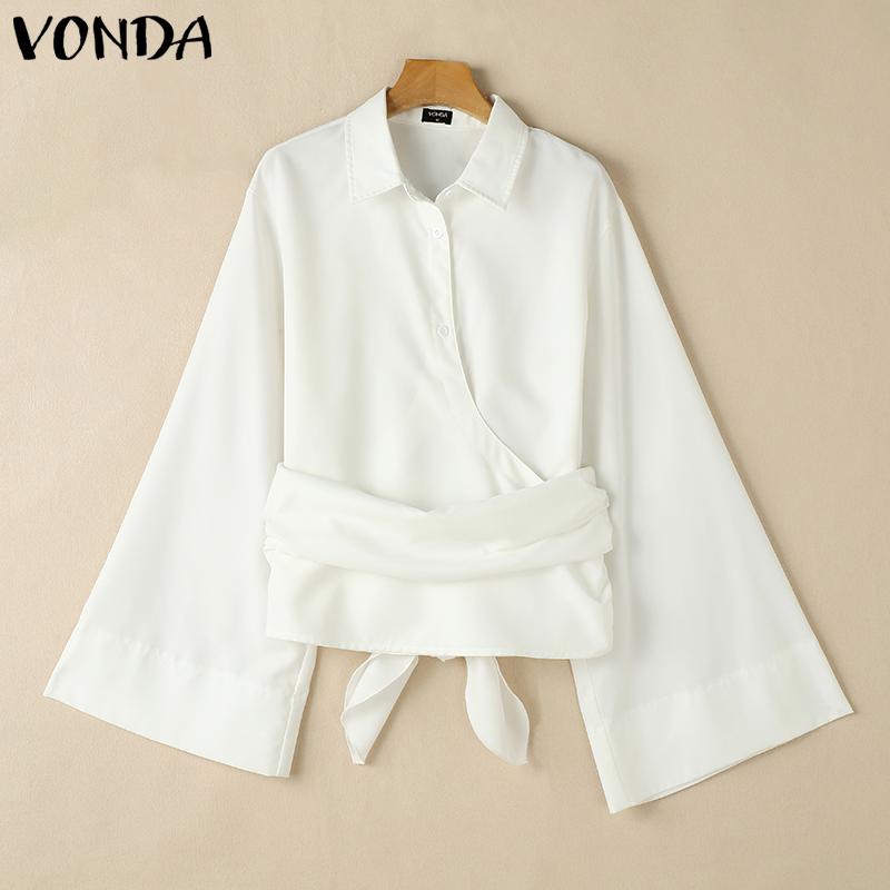 VONDA Женские свободные рубашки с воротником-лацканами и длинным рукавом, нестандартные пуговицы на поясе