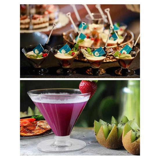 Универсальное использование: Эти одноразовые пластиковые стаканчики для мартини идеально подходят для коктейлей, виски, шампанского, мороженого, тортов, шейков и многого другого. Они придадут любому случаю элегантность и цвет.