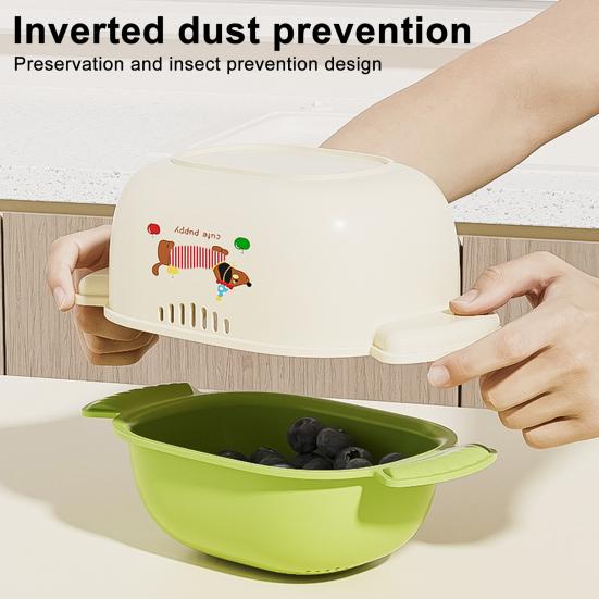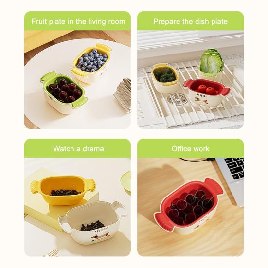 Изготовленный из прочного пластика, наш дуршлаг имеет двухслойную конструкцию, что обеспечивает прочность и долговечность.. Гладкая поверхность не имеет заусенцев, обеспечивая безопасный и комфортный пользовательский опыт без риска травм рук.