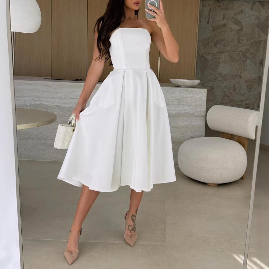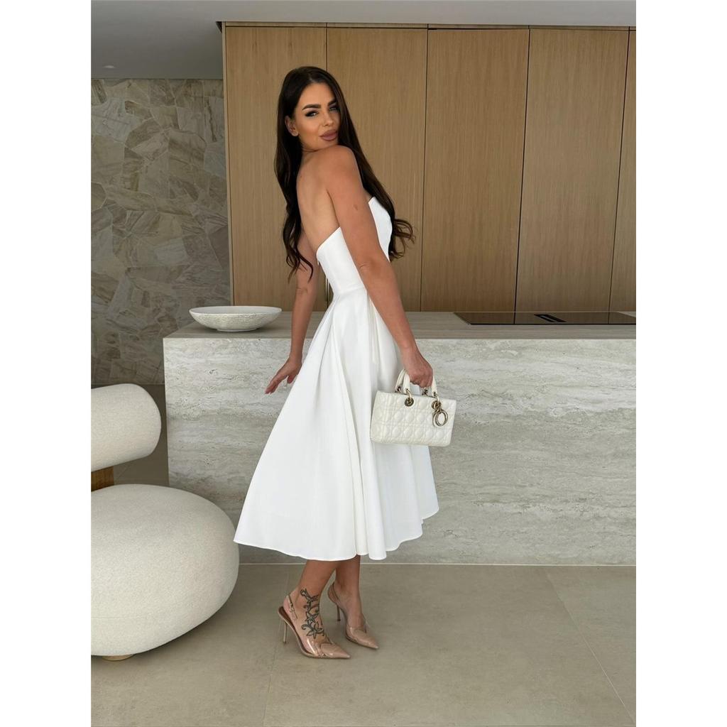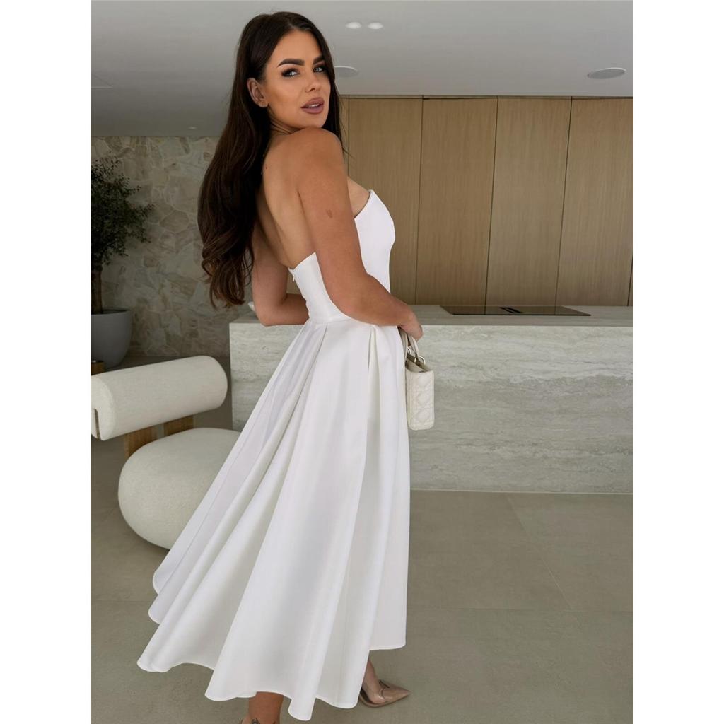 Летние новые сексуальные платья с запахом на груди, однотонные платья с высокой талией и широкими бретелями